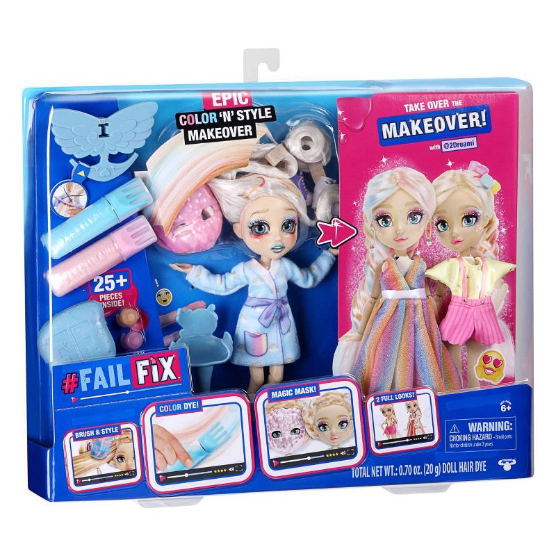 Add a touch of sparkle with the included Twist In Hair Gem Accessories and complete your look with one of two exclusive outfits! Which will you choose? A daytime outfit that's Summery Sweet or a Magical Evening Dress? Finish styling @2Dreami with shoes and jewelry to create the look of her dreams before posing and displaying her on her Styling Chair that turns into a Doll Stand. FailFix is the perfect toy doll for girls who love styling hair and fashion!