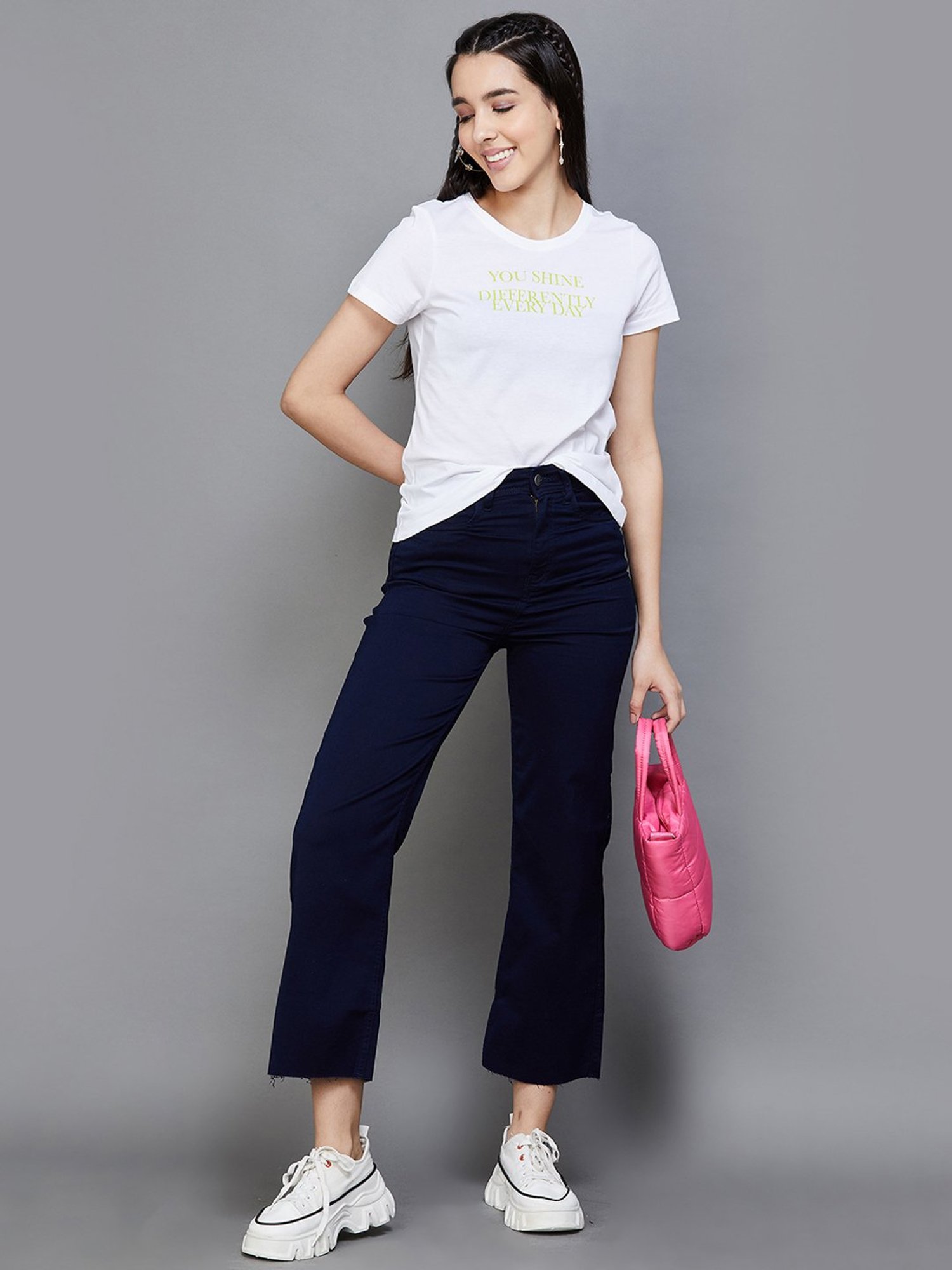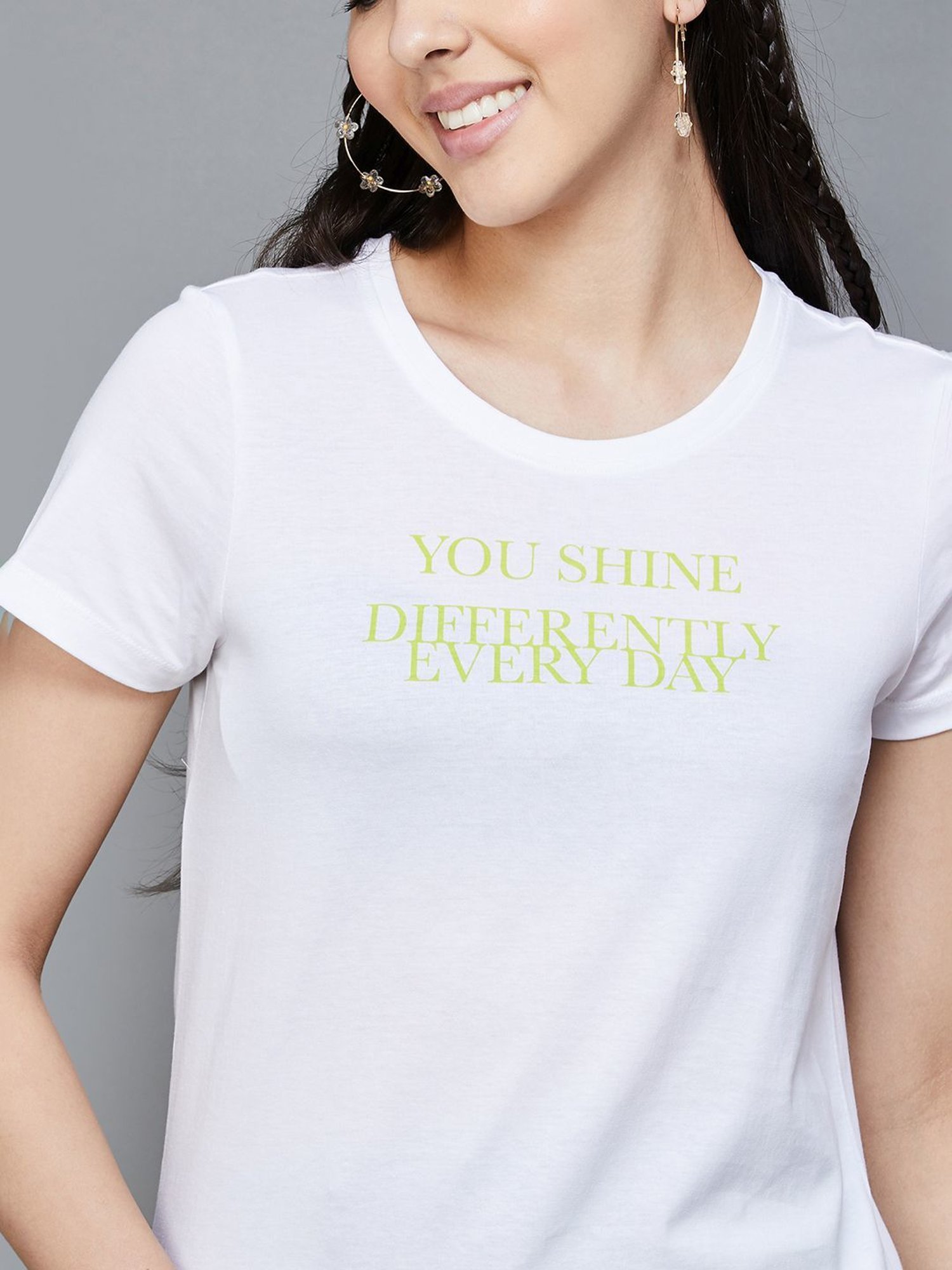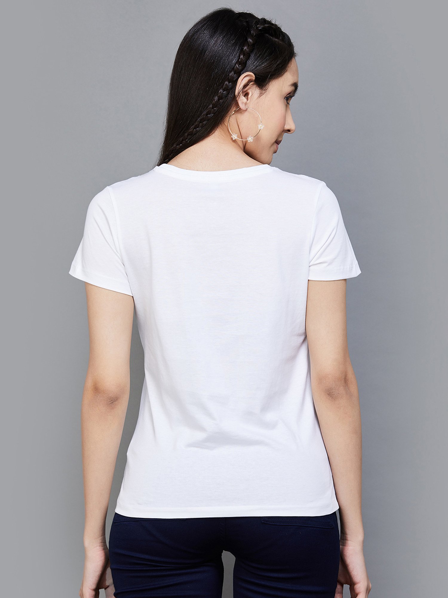 Score high on the fashion meter by wearing this white t-shirt from Fame Forever by Lifestyle. Tailored to sartorial perfection from premium quality fabric, it assures a soft and soothing touch against the skin. The round neck adds to its appeal. Exuding short sleeves, it is sure to fetch you compliments from all. The printed pattern makes it a captivating choice.