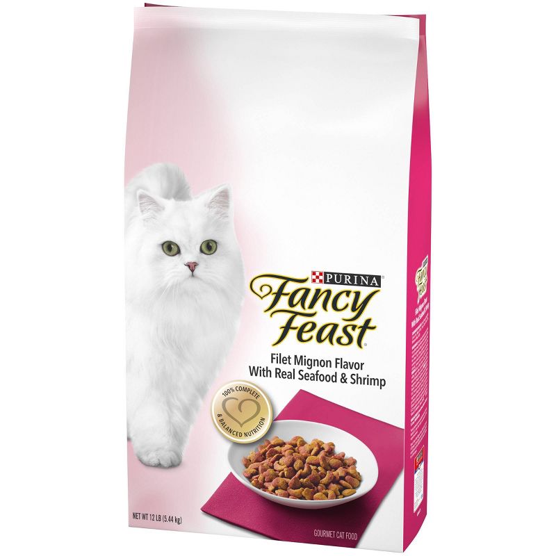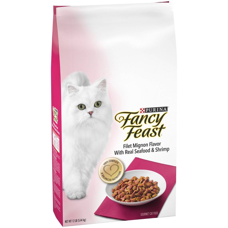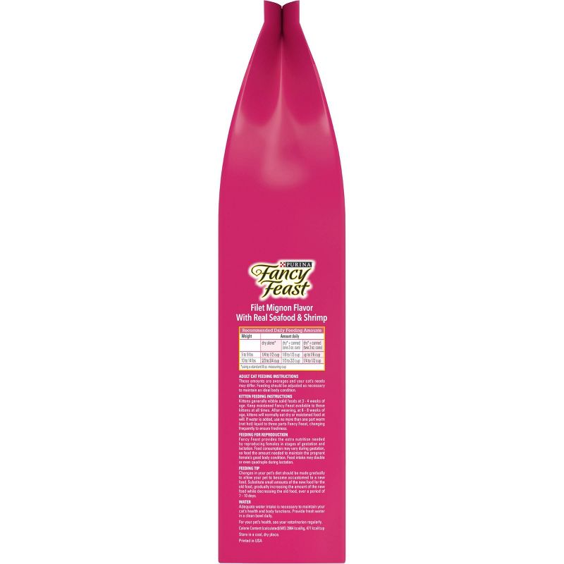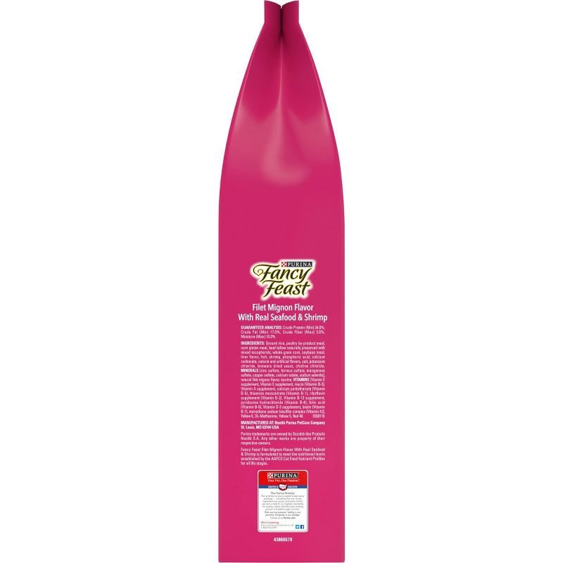 Take mealtime to the next scrumptious level with Purina Fancy Feast Filet Mignon Flavor With Real Seafood and Shrimp dry cat food. This delectable recipe features the surf and turf combination cats love, and the essential vitamins and minerals in every serving help to support her overall health and wellness. Your cat is sure to delight in the tempting texture, with its lightly coated and baked morsels and delicately crunchy finish. The gourmet flavors give her more of what she craves in her dish, and the high-quality ingredients let you feel good about the dry cat foods you offer her at mealtime. Create special moments together when you serve this delicious dry food for cats, and let her explore our complete menu of enticing Fancy Feast gourmet wet cat foods to give her a wealth of exceptional flavors and textures to choose from at feeding time.