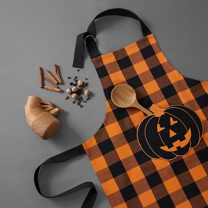 Stylish, rustic and beautiful the Farmhouse Living Collection offers everything you need to create the shabby chic, modern country home. This fashionable apron is made from premium quality cotton and features the perfect buffalo check pattern in black and orange and a pumpkin pocket detail to create best Farm house Halloween look. Excellent for events, parties, and everyday décor use during the fall. Soft cotton can be easily ironed to release stubborn creases and make apron wrinkle free. Apron features D-ring loop for adjustable fit around the neck and a front pocket for easy storage of small kitchen items. Apron measures 24”W x 32”L, front pocket measures 9x10. Coordinate to all the items in our Farmhouse Living collection including napkins, placemats, pot holders, kitchen towels, kitchen mats and window treatments. 100% cotton. Easy care, machine washable.