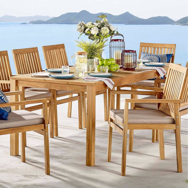 Update your outdoor decor with the Farmstay 79" Outdoor Patio Wood Dining Table. Comprised of FSC certified solid teak wood, this outdoor table is a refreshing addition to your patio dining furniture. The crisp lines and slatted tabletop create a refreshing addition to your patio dining furniture. This stylish outdoor teak dining table helps create a relaxing environment for your patio, deck, porch, or poolside.