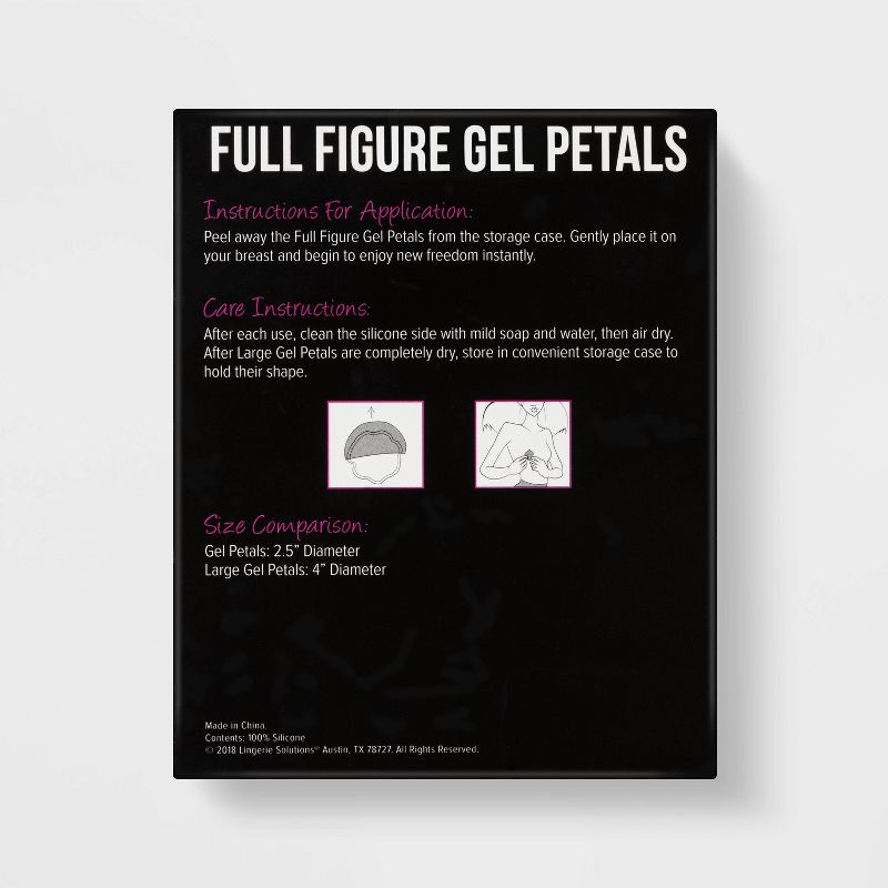 Get the modesty you need with these Reusable Full Figure Gel Breast Petals from Fashion Forms. Adhesive silicone petals provide you with great support — with or without a bra — making them an ideal option underneath form-fitting and backless or strapless clothing. They're made from a soft silicone gel, so you'll barely feel anything against your skin while wearing these for hours on end. Reuse the petals again and again by gently hand washing and laying flat to dry.