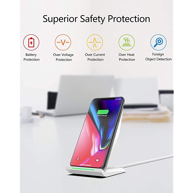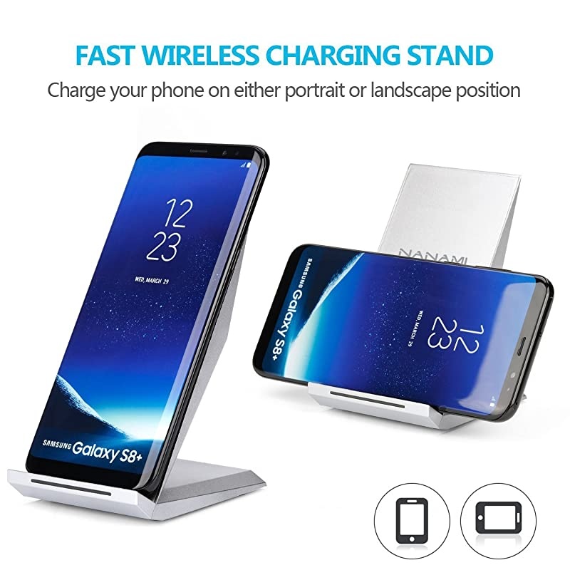 **********2-COIL FAST CHARGING - 1.4 times faster than standard wireless charger, built-in two coils offer you much wider charging area. This Quick Charge 2.0 wireless charging stand will juice up your compatible device from dead to full in a short amount of time. *****ERGONOMIC STAND DESIGN- Unique Sailing Design for Freedom, charging your phone vertically or horizontally, enjoys movie and music without interrupting while charging. Also, you can answer a call without having to unplug. *****TWO WIRELESS CHARGING MODES- 10W