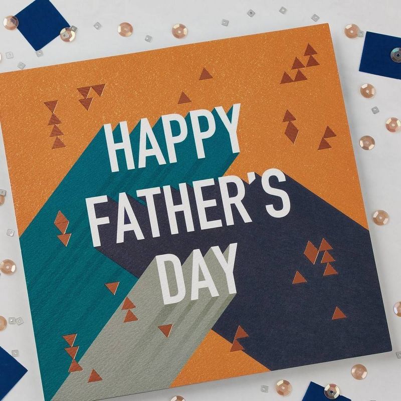 •This Father’s Day card by Present Company features wishes for dad in a cool geometric design. Printed on thick, textured paper stock with orange foil accents