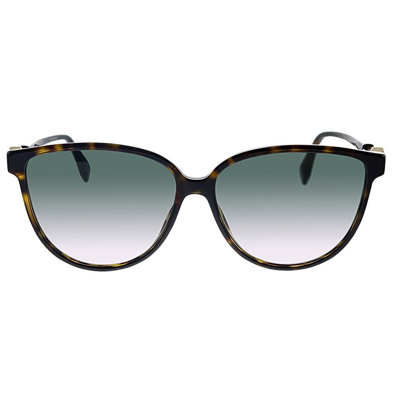 These Fendi FF 0345 086 JP womens oval sunglasses, feature a havana plastic frame and green gradient lenses. Size and dimensions for the Fendi model FF 0345 are lens 59mm x bridge 14mm x temple 145mm. This frame will come with Fendi case, cloth and paperwork, and they can be fitted with your prescription by your eye doctor.