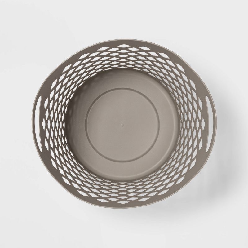 Sort your laundry in style with this Flexible Laundry Basket from Room Essentials™. This round laundry basket showcases allover diamond pattern cutouts for an attractive look. Boasting a flexible construction, this gray laundry basket pairs easily with any decor style, and comes complete with built-in handles for easy movement.