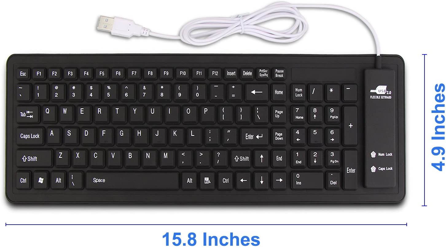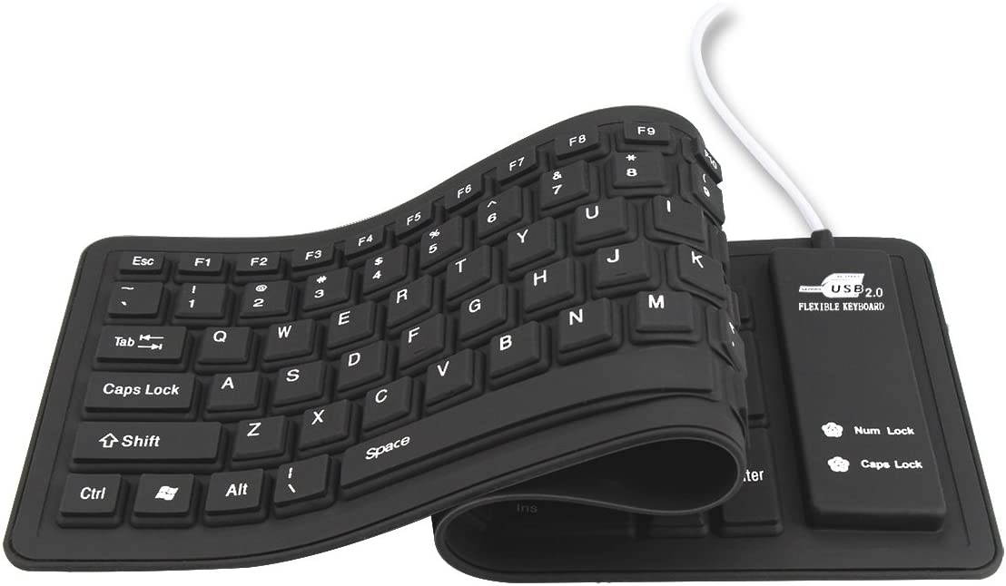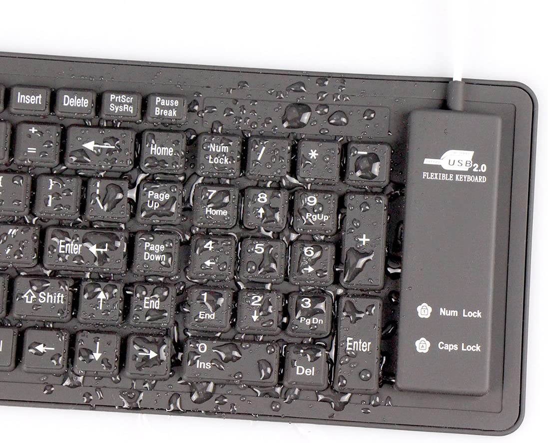 Flexible, Soft, Foldable, Roll-up, Silent, Waterproof, Dustproof, Lightweight, Portable and easy to store. Multiple function make it an extraordinary computer keyboard! Soft silicone material: Made of high intensity and high elasticity silicone gel, non-toxic and odorless. Flexible material allow you to fold it or roll up freely, very handy and convenient to take with notebook, laptop and mac. Waterproof and dustproof: No additional keyboard cover skin required, food crumbs or dust can be easily cleaned thoroughly. Clean the silicone keyboard with water, alcohol, or alcohol based disinfectant. |