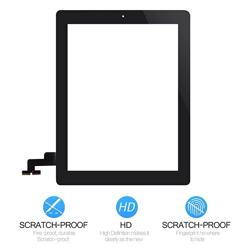 *****Package content: 1 x iPad 2 touch screen replacement1 x Professional tools kit, 1 x pre-installed adhesive, 1 x Middle Frame Bezel. not include screen protectors! *****Professional