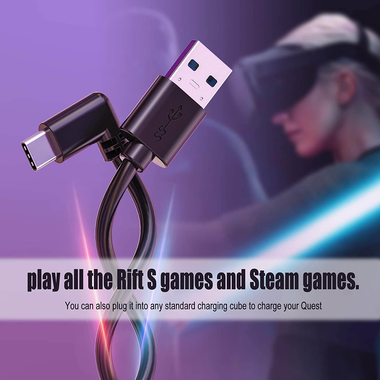 USB 3.2 Gen1 Data Transfer & Fast Charging Cable for Oculus Quest /Quest 2/Rift S and More Devices with USB C Port |