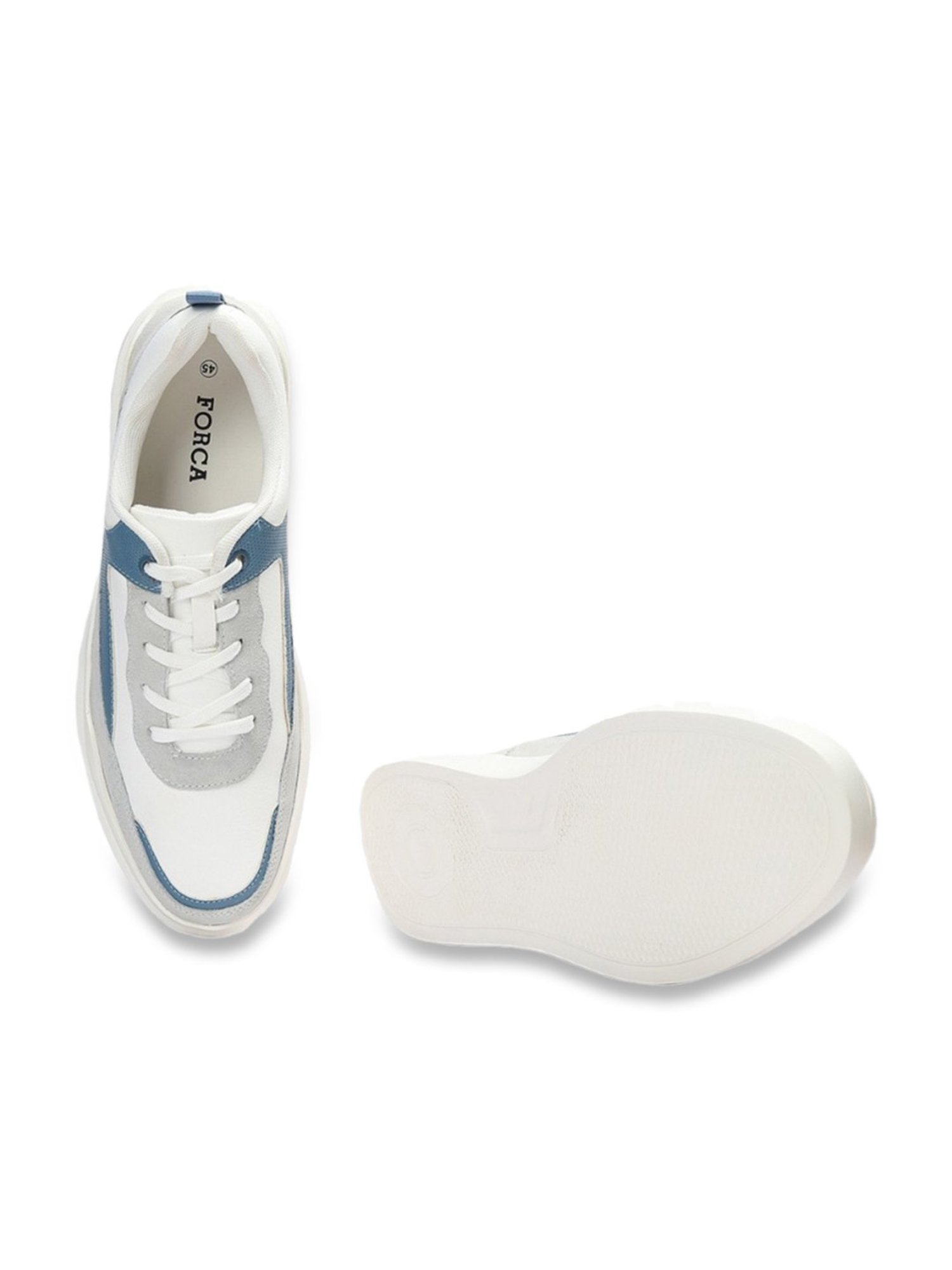 A fusion of style and comfort, this pair of blue casual sneakers from Forca by Lifestyle will be a perfect pick for any fashionable man. It features an abrasion resistant rubber sole that prevents wear and tear and the round shaped tip will add to its attractive appeal. The premium quality synthetic upper ensures longevity. Wear it with a pair of chinos and a polo T-shirt on any casual occasion to stand out in the crowd.