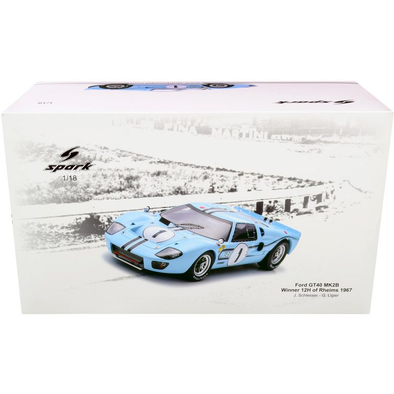Brand new 1/18 scale car model of Ford GT40 Mk2B #1 Jo Schlesser - Guy Ligier Winner 12H of Reims (1967) model car by Spark.