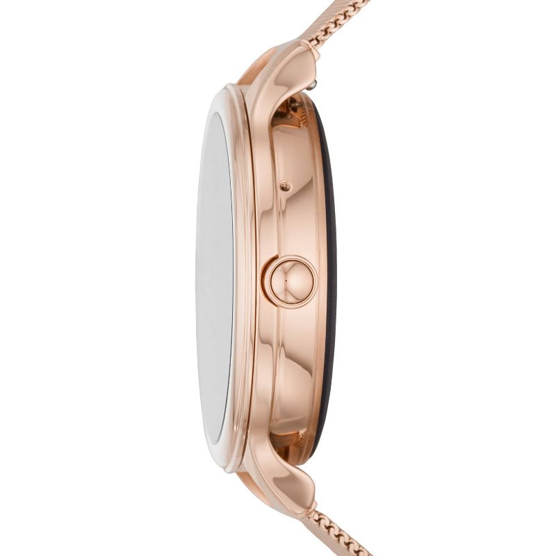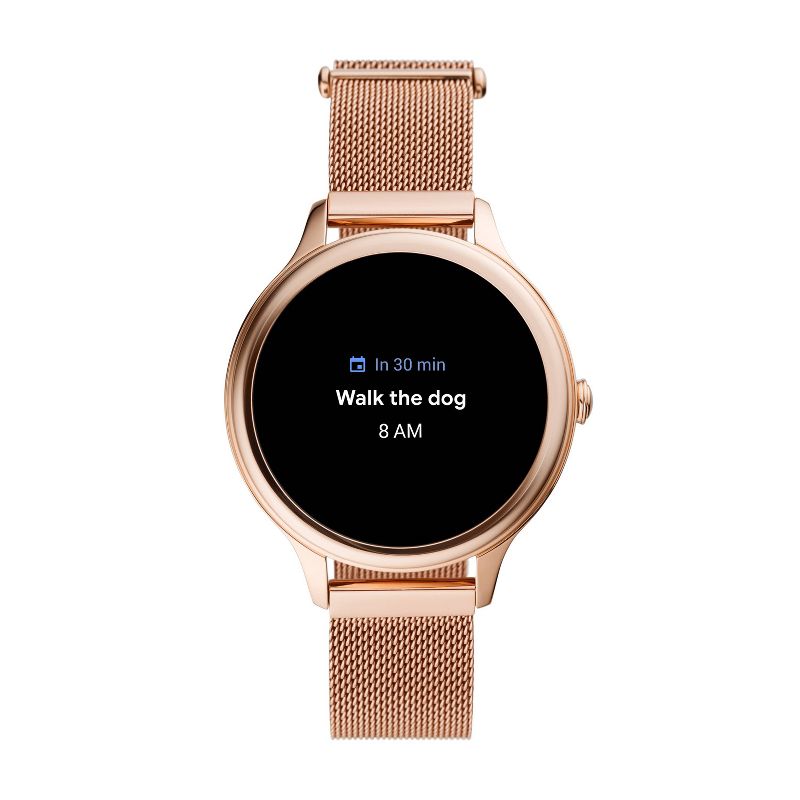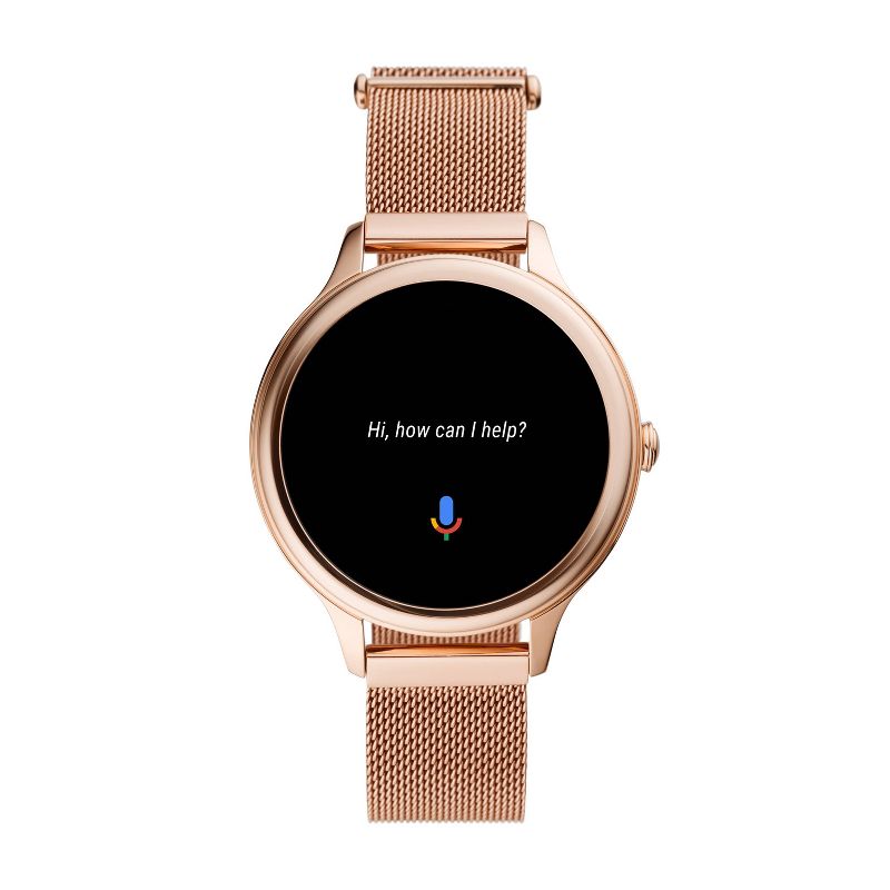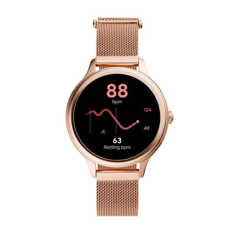 Tech for real life. This 42mm Gen 5E touchscreen smartwatch features a rose gold-tone stainless steel mesh bracelet, speaker functionality, 4GB storage capacity and three smart battery modes to extend battery life for multiple days. Smartwatches powered with Wear OS by Google are compatible with iPhone® and Android™ phones. Wear OS by Google and other related marks are trademarks of Google LLC. Supported features may vary between platforms. To avoid damage to your watch, only use with included charger. Do not use a USB hub, USB splitter, USB y-cable, battery pack or other peripheral device to charge. Product should be kept more than 20cm away from implanted medical devices to minimize potential for RF interference. See product insert for full details.
