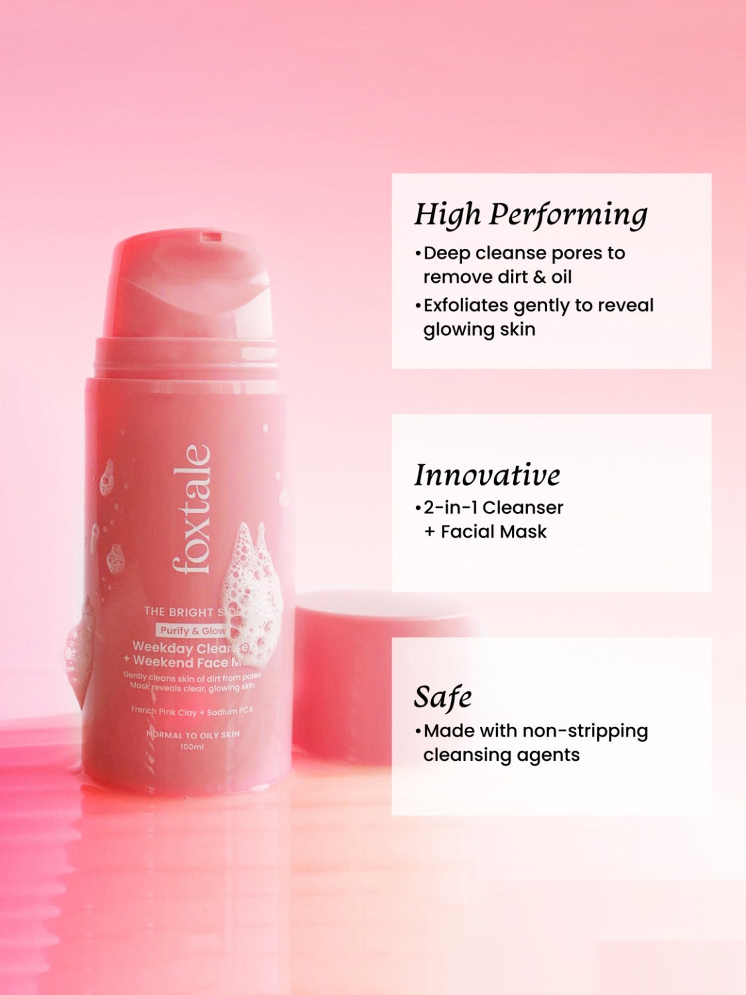 This Foxtale The Bright Side Purify & Glow Weekday Cleanser + Weekend Face Mask doubles up as a face mask to give you the benefits of both purification and exfoliation so you can get clear skin. The Foxtale The Bright Side Purify & Glow Weekday Cleanser + Weekend Face Mask works wonders to give you a renewed, long lasting glow too. It provides an immediate glow after the wash-off and makes your skin feel softer. While the cleanser helps you get rid of excess oil, it doesn't strip your skin dry and ensures to protect the skin's barrier.