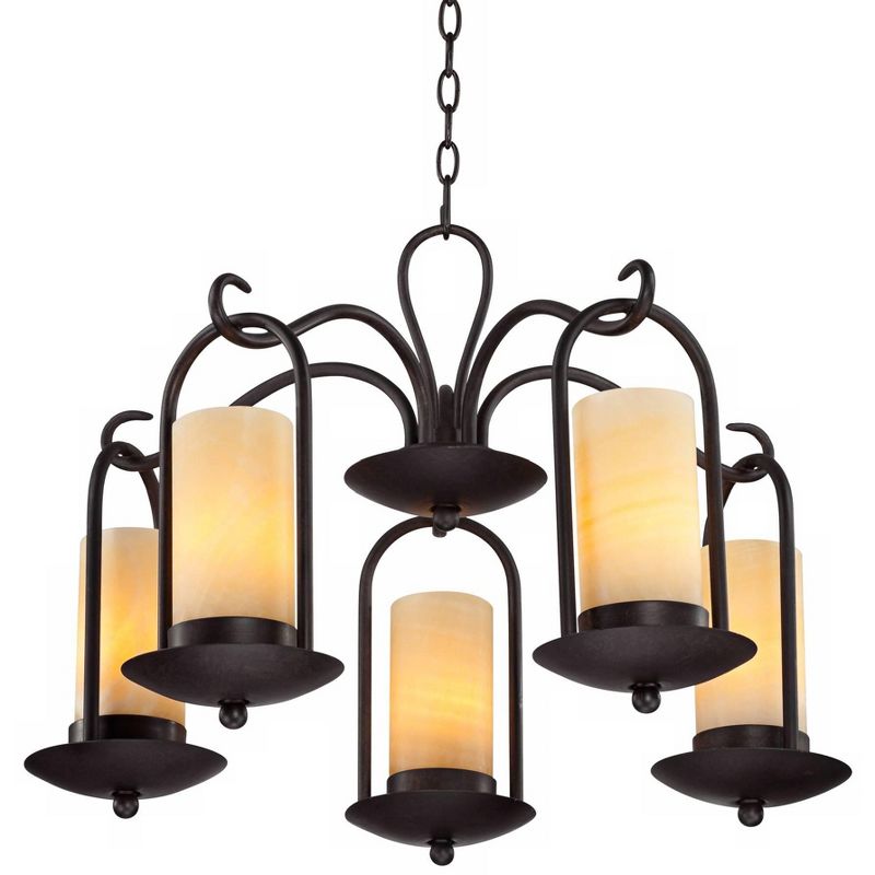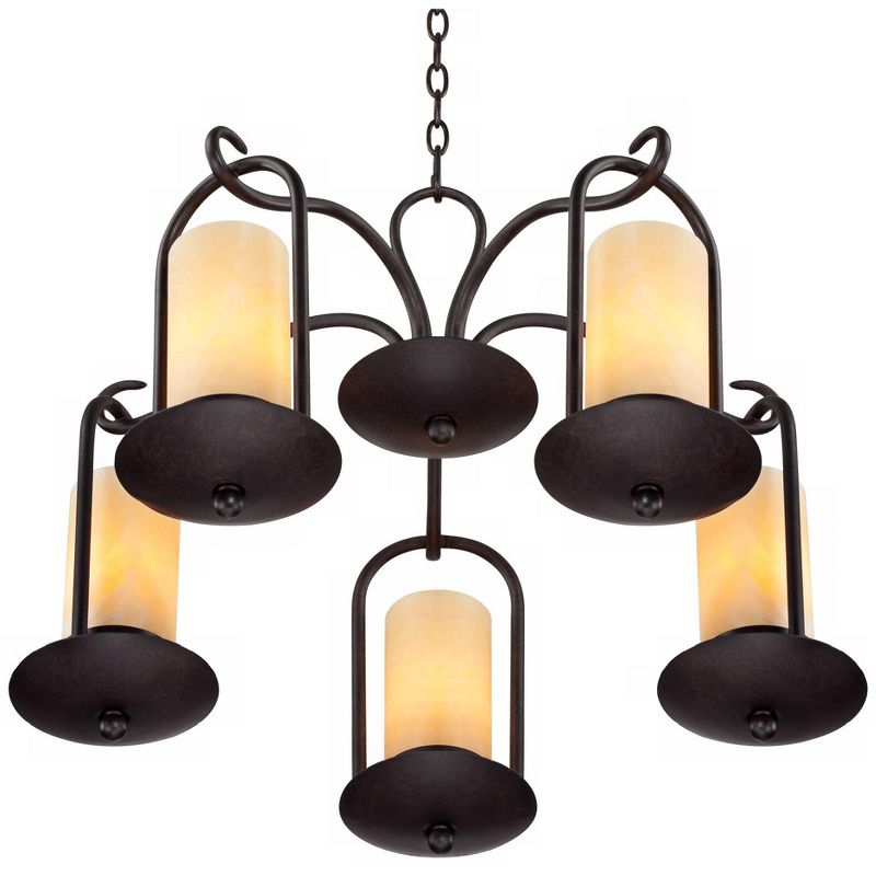 • Espresso finish. Onyx faux stone candles. Clear glass inner diffusers. From Franklin Iron Works chandeliers.