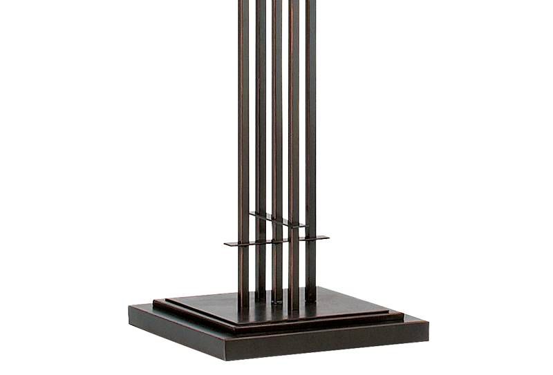 • Bronze finish square base, pole and lamp arms. Champagne glass.