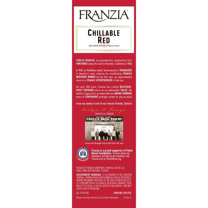 A light-bodied, Chillable Red wine with full berry aromas, softer than a traditional red. Pairs well with chicken, green salad and summer time. Serve chilled.