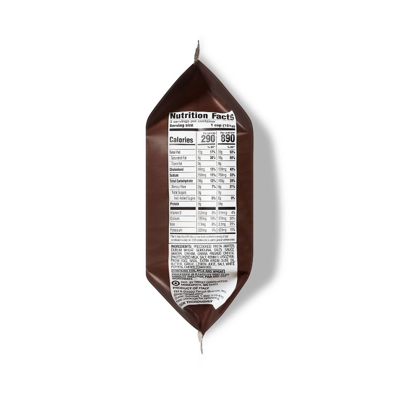 A package of Pesto Rotini with Cherry Tomatoes from Good & Gatherâ„¢ can help make hectic weeknights and busy weekends run just a little more smoothly. This delicious rotini pasta comes topped with pesto and cherry tomatoes for vibrant flavor the whole family will love, and it's precooked and ready to heat and eat for a mealtime option that couldn't be easier. Made with no artificial preservatives and no artificial flavors, and with three servings in each bag, there's plenty to go around. Serve it as a main dish with a veggie side, or pair with grilled chicken breast and a green salad for a satisfying side they'll ask for again and again.
