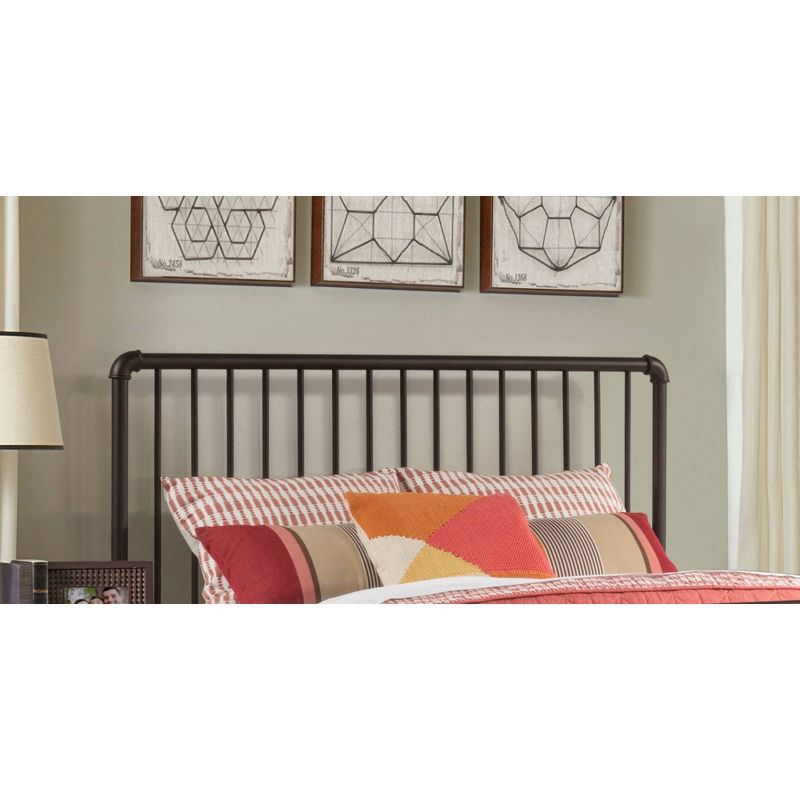 The Hillsdale Furniture Brandi Bed is ideal for a wide variety of décor schemes. Its simple pipe fittings and bun feet are understated and subtle. Closely placed spindles give the illusion of greater width -- while maintaining a sleek profile. The Oiled Bronze metal finish is both handsome and versatile. This twin-size metal Bed has everything you need to upgrade your bedroom style: headboard and footboard with bed frame. Box spring and mattress not included. Assembly required.