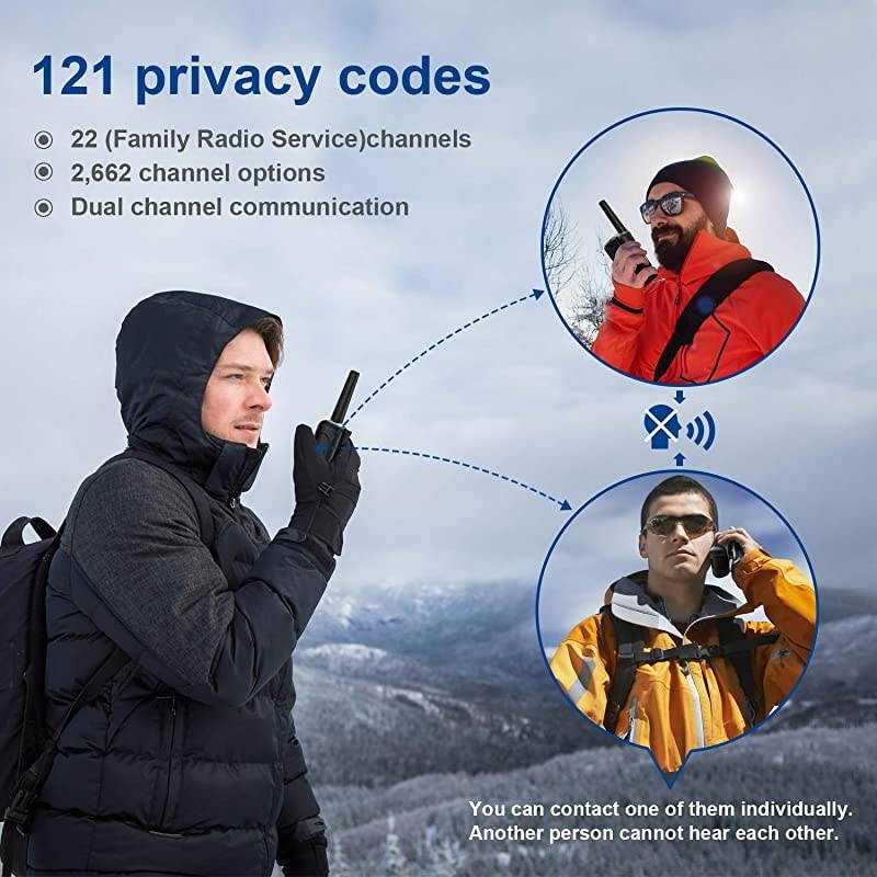 Color: Black-LJ Walkie Talkies Two-way radios your best choice for field survival. Walkie Talkies are the perfect way to stay in touch when out and about, whether at the playground, biking in the park or enjoying a picnic. Walkie Talkies Long Range UP to 16 miles communication range in open fields, provide 0.5 -2 miles communication in built-up areas or obstructed conditions. 2662 Channels Walkie talkies have 22 GMRS/FRS channels plus 121 sets of CTCSS tones (privacy codes). The continuous tone-coded squelch system gives you up to 2662 combinations to help block other conversations. Professional Walkie Talkies Earpiece Walkie talkie earpiece with mic can let our walkie talkie use in nosie place. Clear Voice & VOX Scan The sound is loud and clear with adjustable volume level. Walkie Talkies can scan which channel is transmitting now. Hands-Free Operation 3 sensitivity levels for hands-free operation, easy voice and sound activation transmission (VOX). Danger Quick Alarm One key can quickly alarm your friends or family when you are in danger.