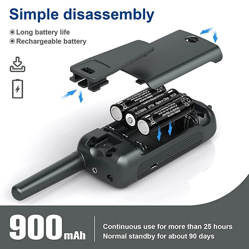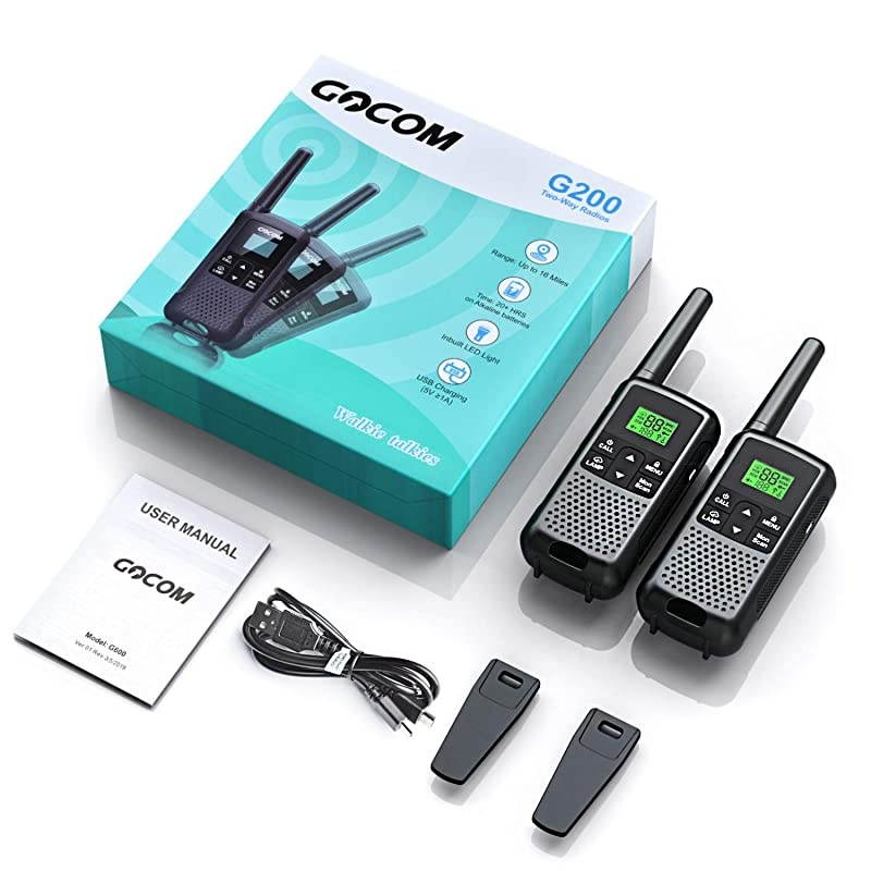 PACKAGE INCLUDE: 2 x Walkie Talkies 2 x Belt Clips 1 x Dual USB Line 1 x User's Manual