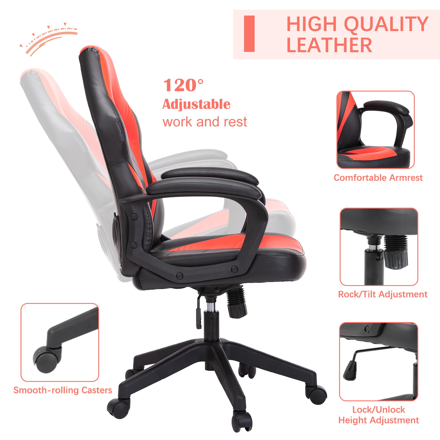 Imagine you are sitting on this gaming chair for working, studying, gaming or taking a rest, it will provide you full support for the head, shoulder, neck, back, and waist.