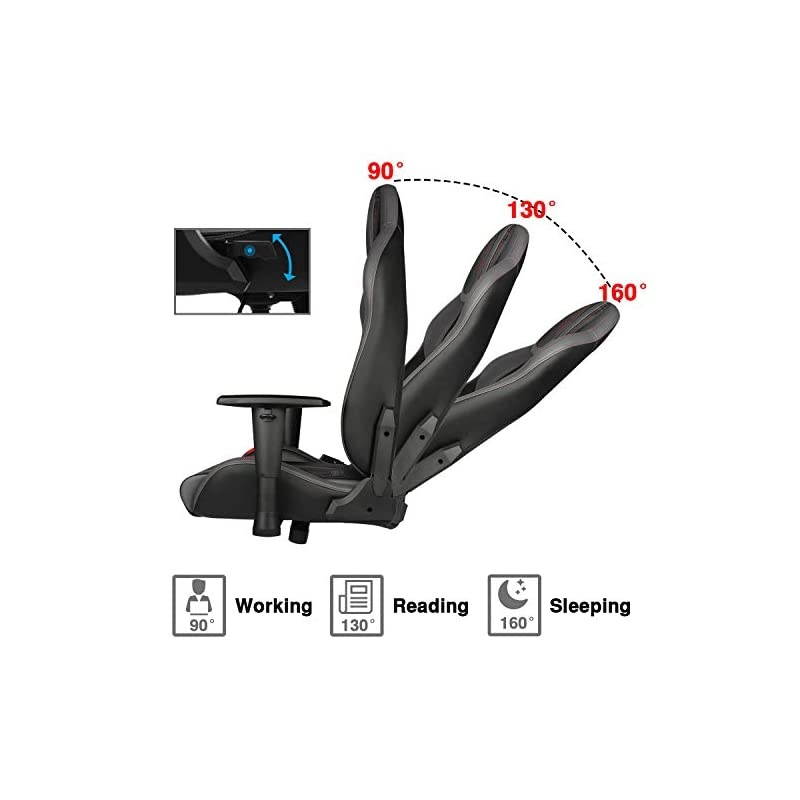 lbs -Seating area dimension: 21.2" x 20" (W x D) -Backrest dimension: 20.8" x 33.4" (W x H) -Overall dimension: 28.3" x 28.3" x 49.6 - 53.4" (W x D x H) Are you tired after a full day's work or playing computer games for a long periods? Just relax, brings you a racing chair designed with an emphasis on ergonomics. The chair can perfectly fit your body shape, give you the most comfortable support. is more than a chair to sit, its an artwork that can provide you all-day relaxation. Thats why were here. Having the professional invention group and advanced product line, is always on the way of evolving and improving. Please join us and your ideas are more likely to present in the next chair.