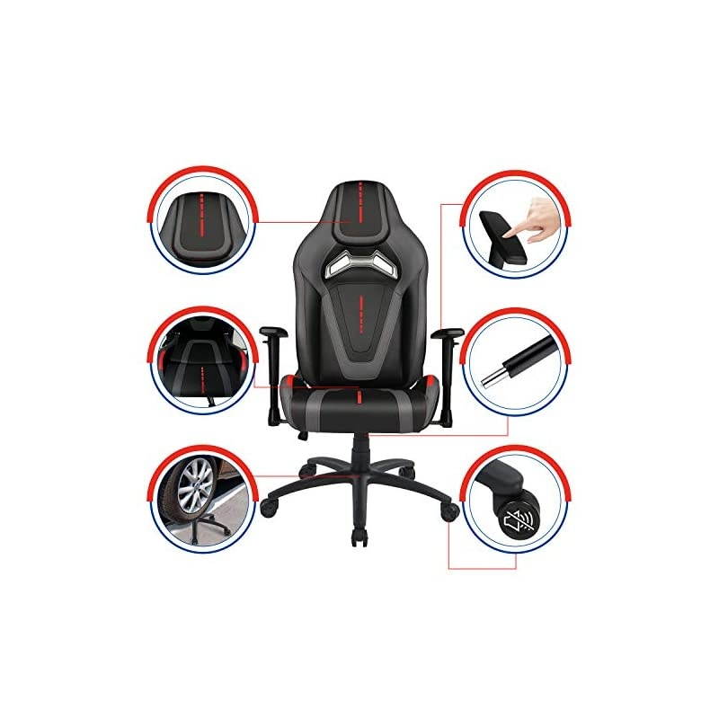 ERGONOMIC COMFORT: With segmented padded designed to give highly contoured support when and where you need it most, high back provides multi-point body contact to share the pressure, keeping you comfy after long hours of game or work. Thick padded back & seat take this chair to the next level of comfort.