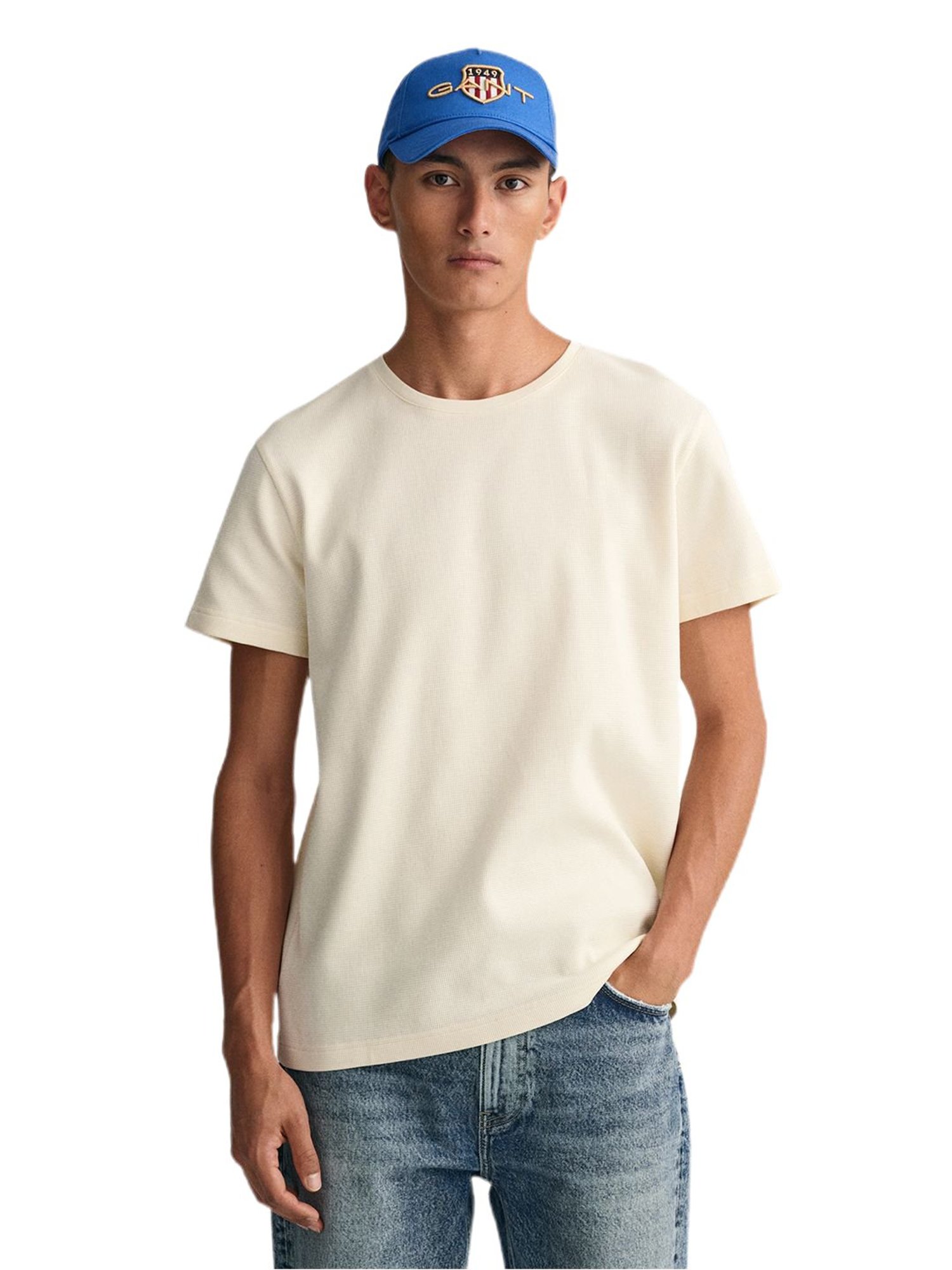 Show your vibrant taste in accessories by wearing this baseball cap from GANT. Made of premium quality cotton, this baseball cap offers you maximum breathability and comfort. The blue hue and the solid pattern of this baseball cap further elevate its look.