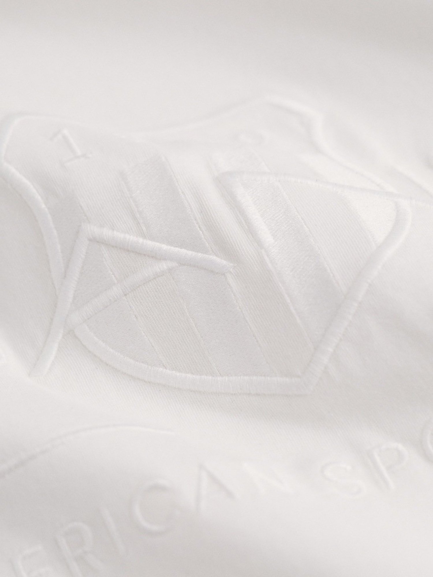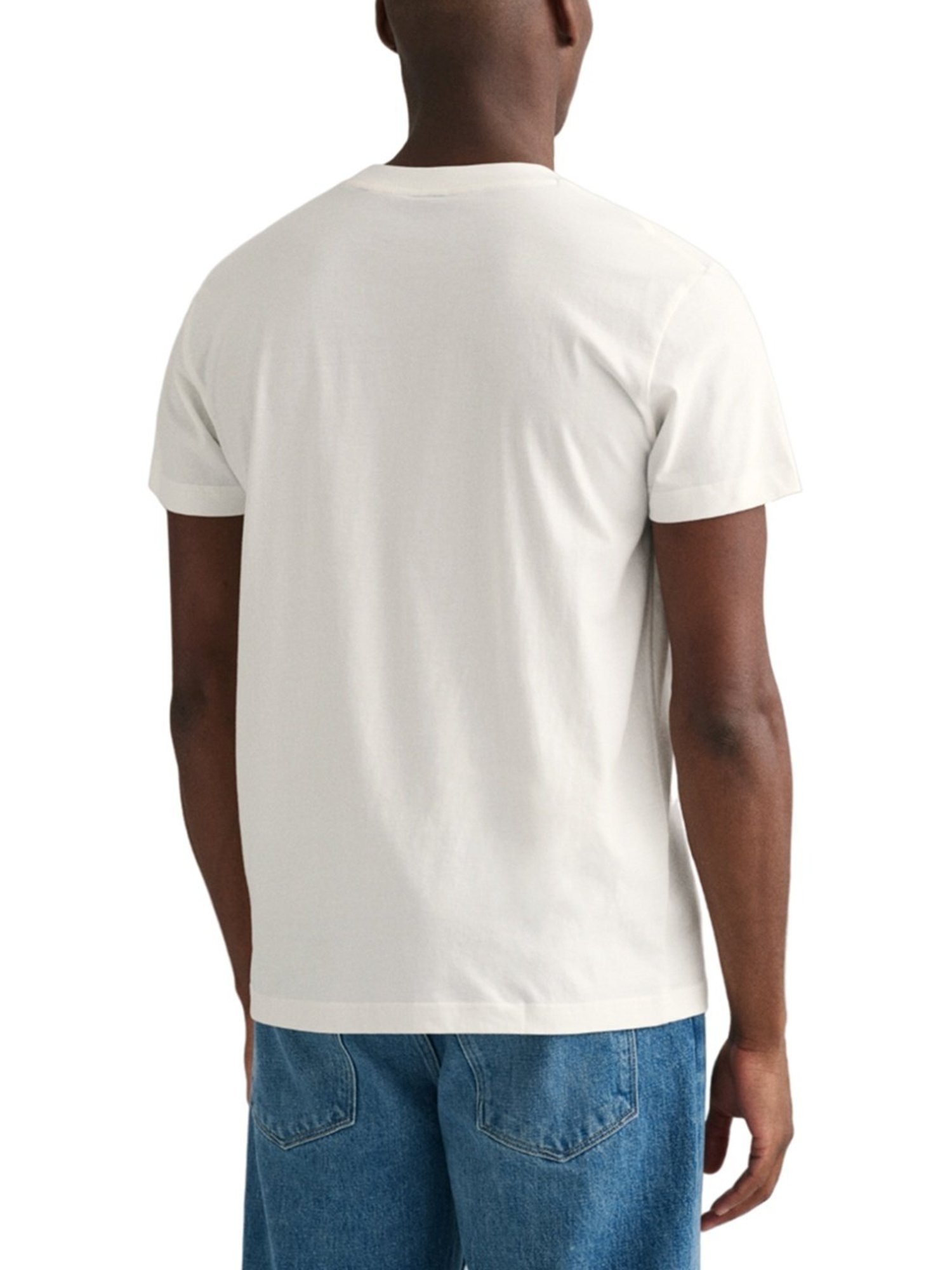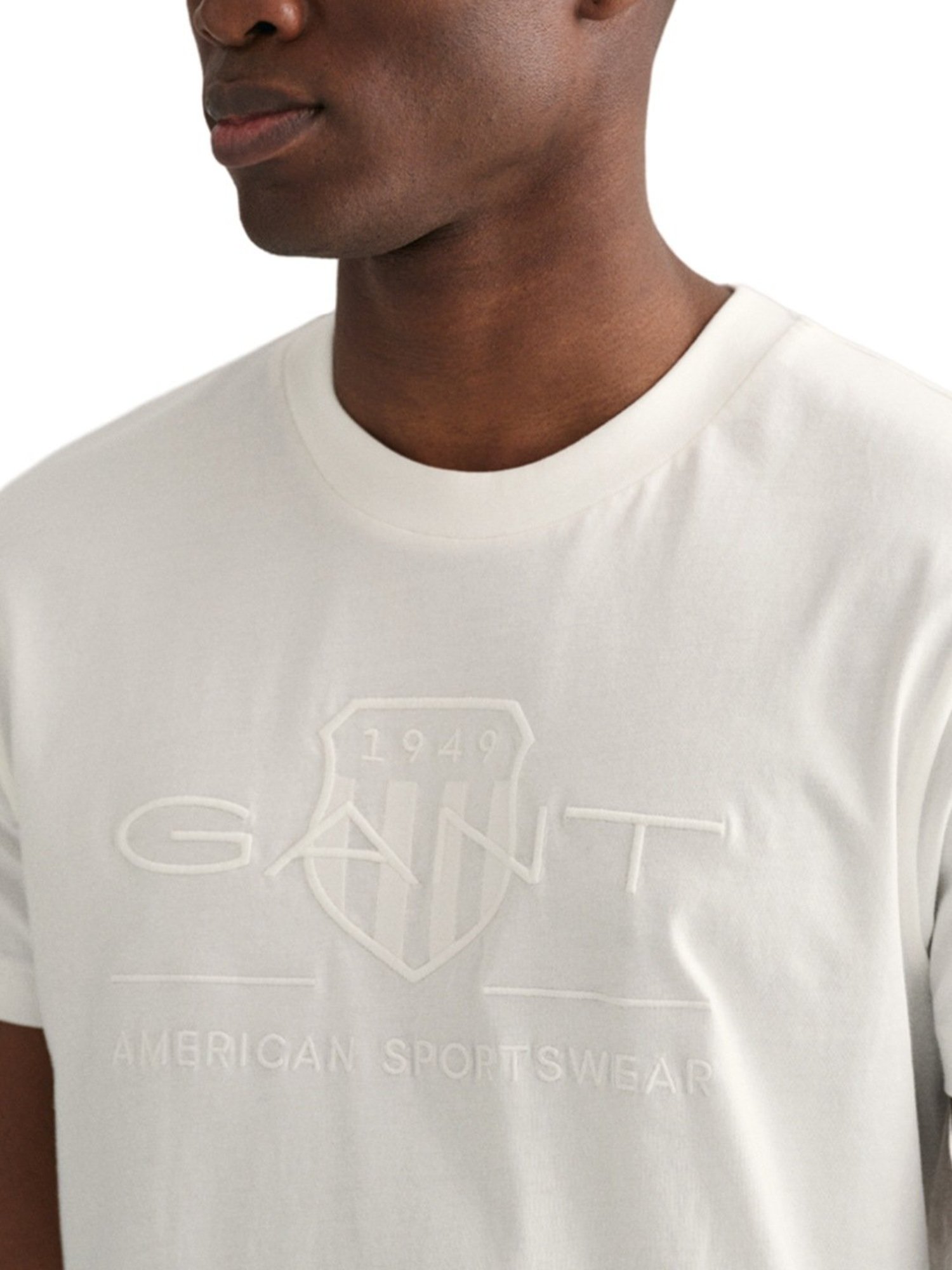 Wear this white regular fit t-shirt from Gant and be admired for your distinct sense of fashion. Tailored to sartorial perfection from premium quality fabric, it assures a soft and soothing touch against the skin. The round neck adds to its appeal. Exuding short sleeves, it is sure to fetch you compliments from all. It emanates a brand logo which makes it a unique choice.