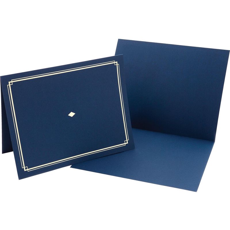 Present awards with this 6-pack of Gartner navy blue gold-trimmed certificate holders. Protect awards inside of these heavy-duty certificate holders. The classic dark navy color and metallic gold trim of these holders are ideal for recognizing achievement. This 6-pack of Gartner certificate holders fits standard letter-sized certificates. Certificate holders for presenting and protecting awards. Comes in blue with gold foil frame. Holds 8.5 x 11 certificates. Six holders per pack. Certificate holders for presenting and protecting awards. Comes in blue with gold foil frame. Holds 8.5" x 11" certificates Six holders per pack. Sold as 6/Pack.