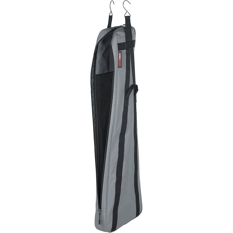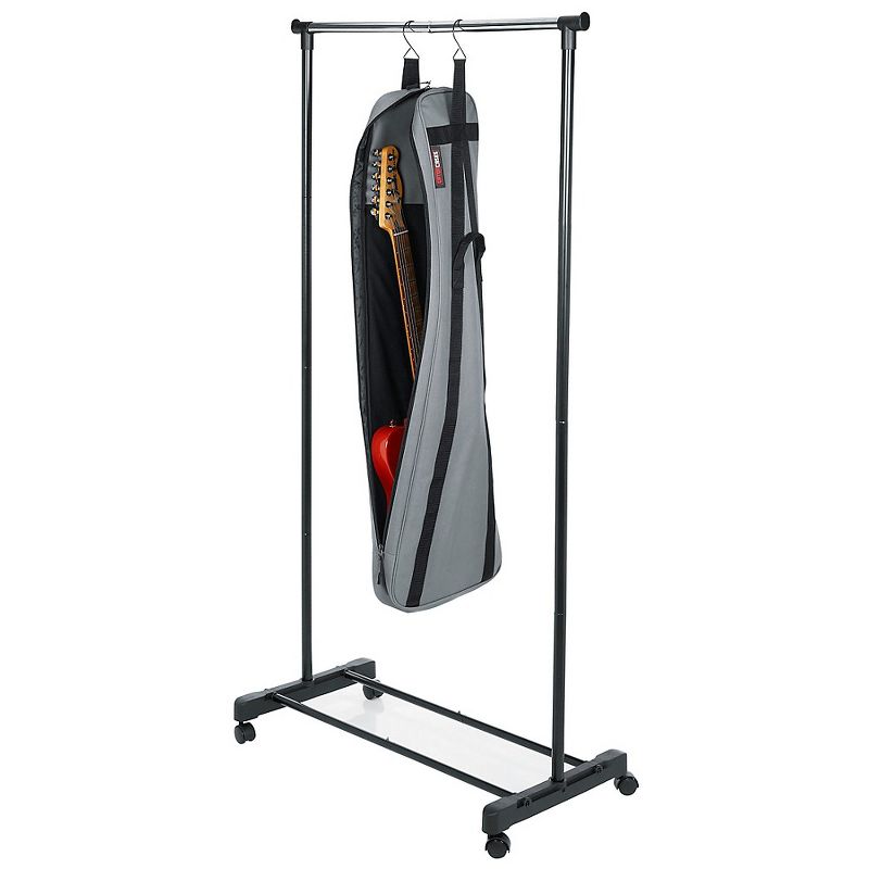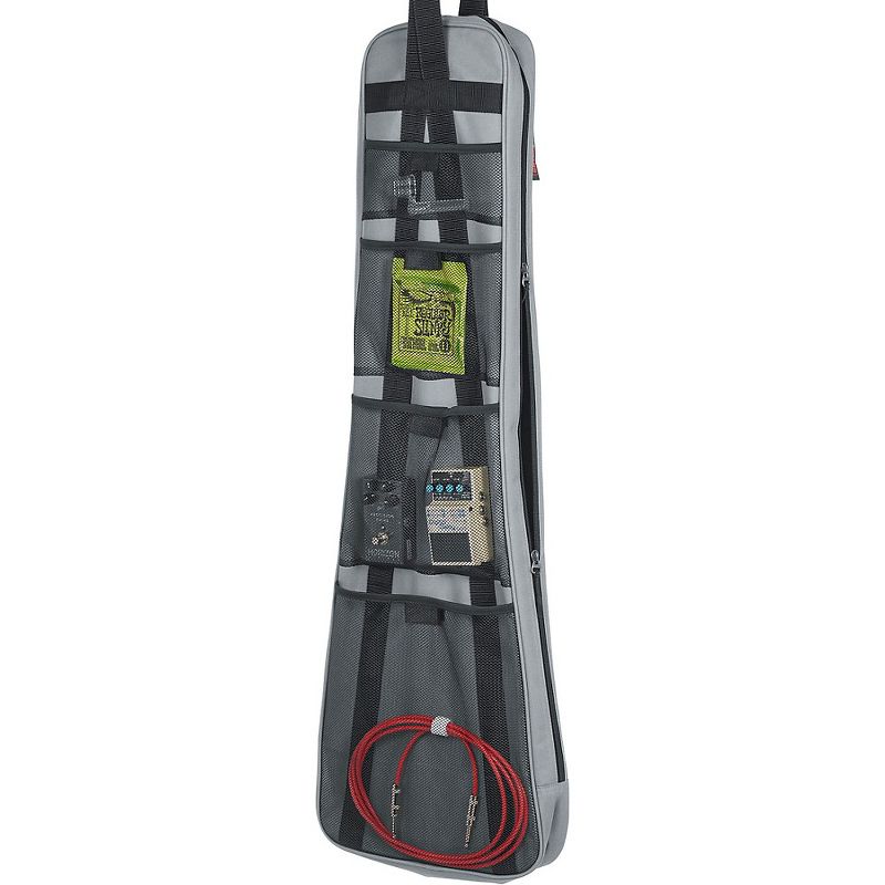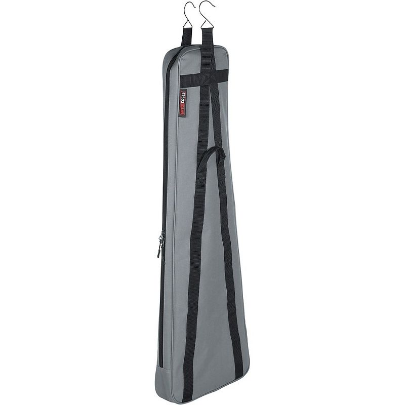 This GCB-ELECTRIC closet hanging electric guitarbag provides storage for electric guitars. It provides extra storage for guitars by occupying unused closet space. Dual closet rail hooks attach to the reinforced nylon web straps to safely hang guitar inside the bag. A tough, grey polyester exterior keeps the guitar from direct contact with closet items and also provides dust protection. Inside, the soft tricot interior lining prevents scratches and surface damage. A ventilation grommet ensures proper humidity during long-term storage. Additional mesh pockets with hook-and-loop closures provide a space for storing tuner, strings, and other accessories. When 're ready to play, the rear handle strap allows for easy retrieval.