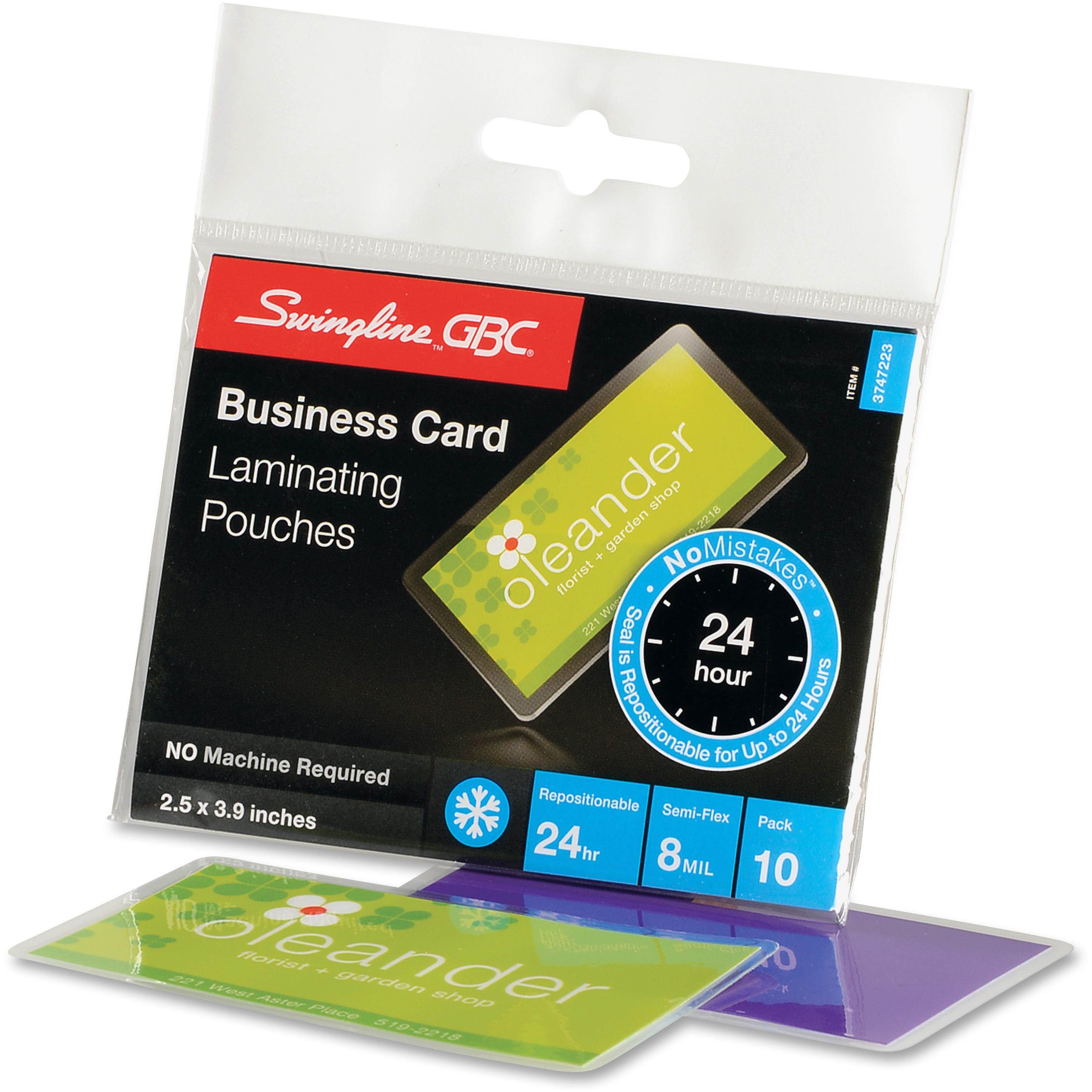 Self-sealing pouches require no heat and no machine. Simply peel and seal. Laminating pouches allow easy finishing and can be edited up to 24 hours after sealing to remove bubbles or wrinkles. Ideal for heat-sensitive materials, inks and photos. Each business card-size pouch has a clear matte finish and 8 mil thickness, and delivers machine-free, editable laminating.
