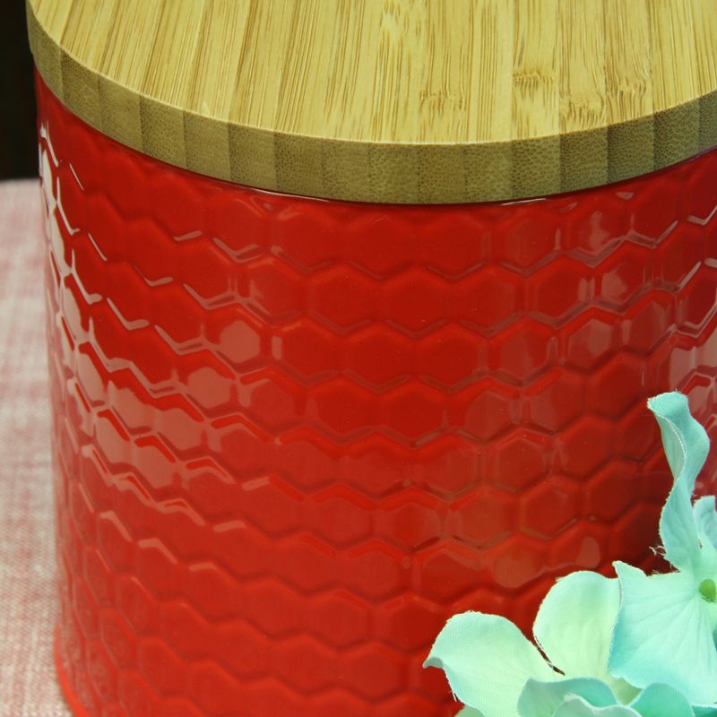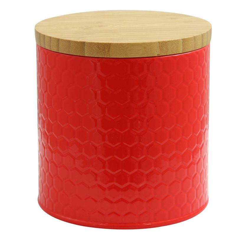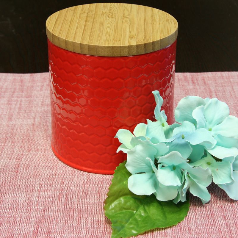 The General Store Hollydale Embossed Canister with Bamboo Lid is designed to stylishly store anything in your panty. At 5.12 inches high and 4.8 inches in diameter, this beautiful and unique storage canister is perfect for storing snacks and various ingredients. The canister is powder coated steel which keeps foods fresh. It also comes with a bamboo lid to add a touch of style and beautiful design.
