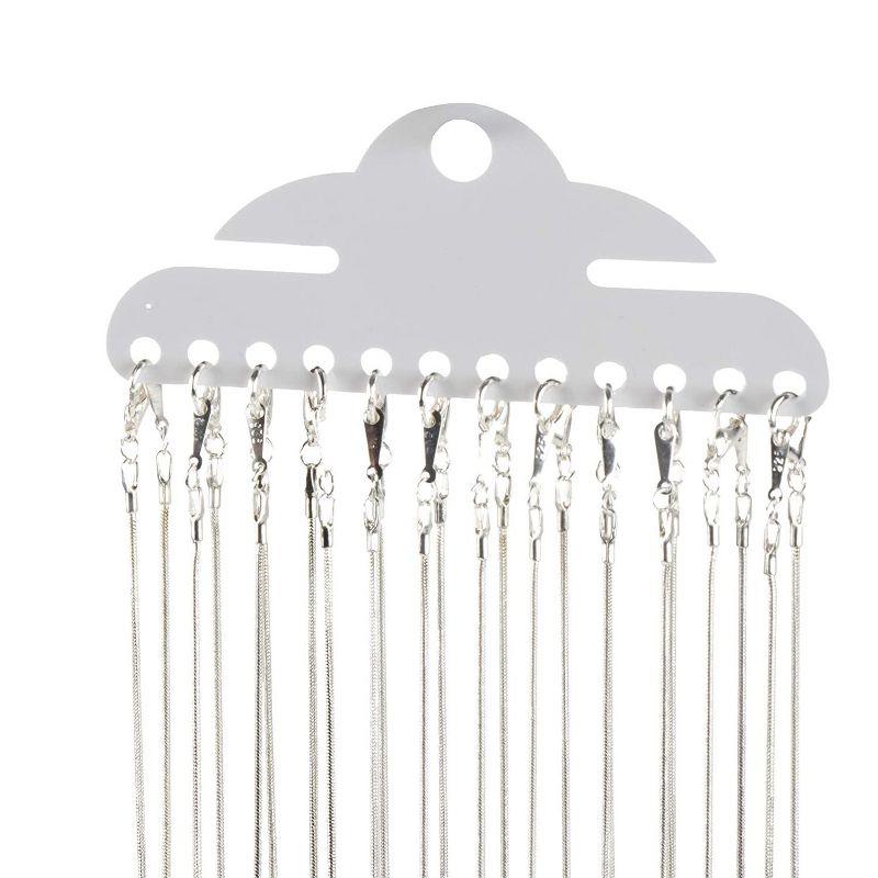 Whip up fun fashion accessories or customized gifts by starting with these snake chain necklace. You get 24 silver plated snake chain necklace, and each one comes with a lobster-style clasp. Create your own pendants or string beads along these necklace chains, which measure 17.7 x 0.05 inches to fit a variety of necklines. The smooth snake chain design is comfortable to wear, and it's plated in silver, fitting most pendants and charms. Use these metal necklace chains to replace damaged jewelry foundations so you can continue displaying your pendants or to make new creations to wear. (Please note that the pendants in the photos are not included.)