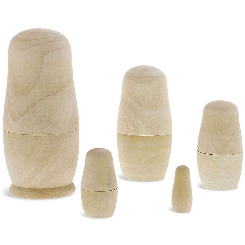 Set of 5 Blank Unpainted Wood Nesting Dolls for DIY Crafts, Painting, 5 Sizes x 1
