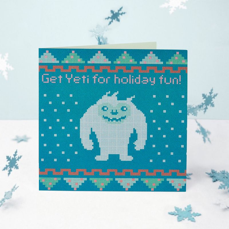 Make it an epic Christmas with a yeti-themed holiday card from Present Company! This ‘ugly sweater’ design is the perfect funny card for him (brother, friend, dad), for kids (son, daughter, niece, nephew) or for anyone who deserves a smile. Colorful cross-stitch patterns and a friendly abominable snowman character decorate the square card made of thick, cotton-blend paper stock. For even more cheer, the package includes a matching envelope and a unique seal printed with a bonus message. Present Company is here to help you celebrate the legendary people in your life, with season’s greetings to make the holidays less hectic and more meaningful.