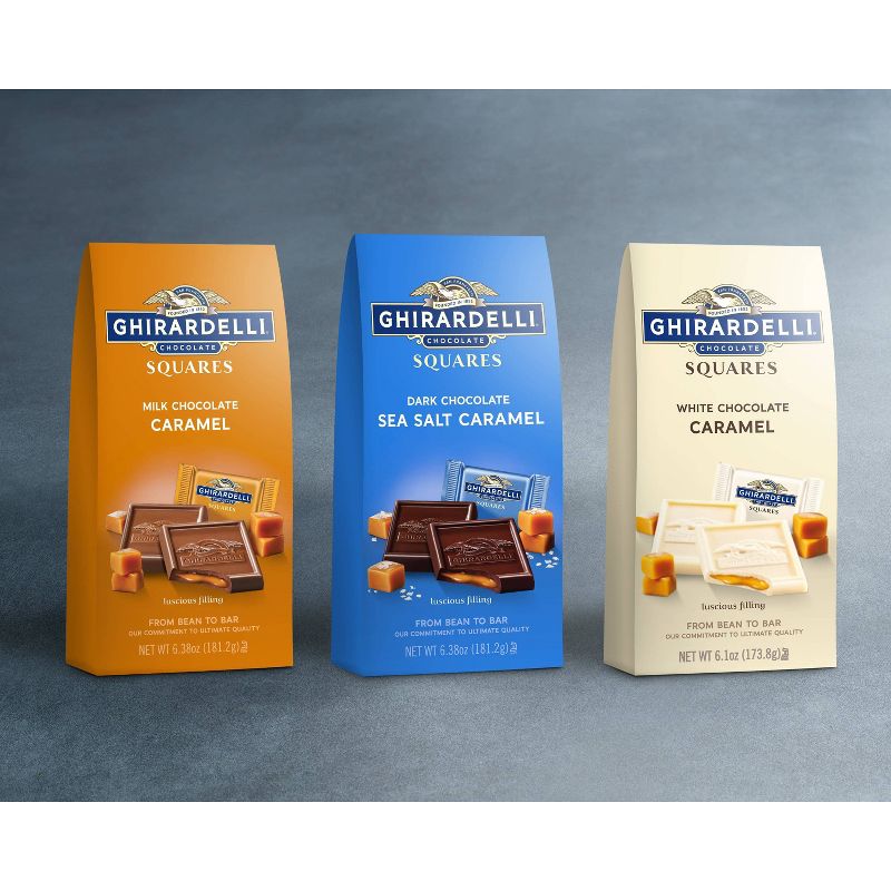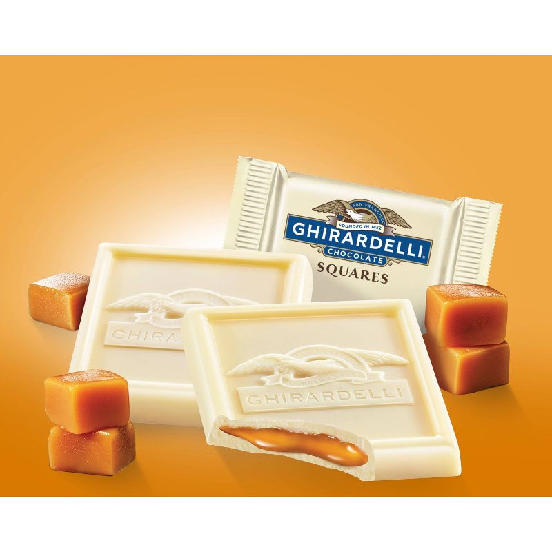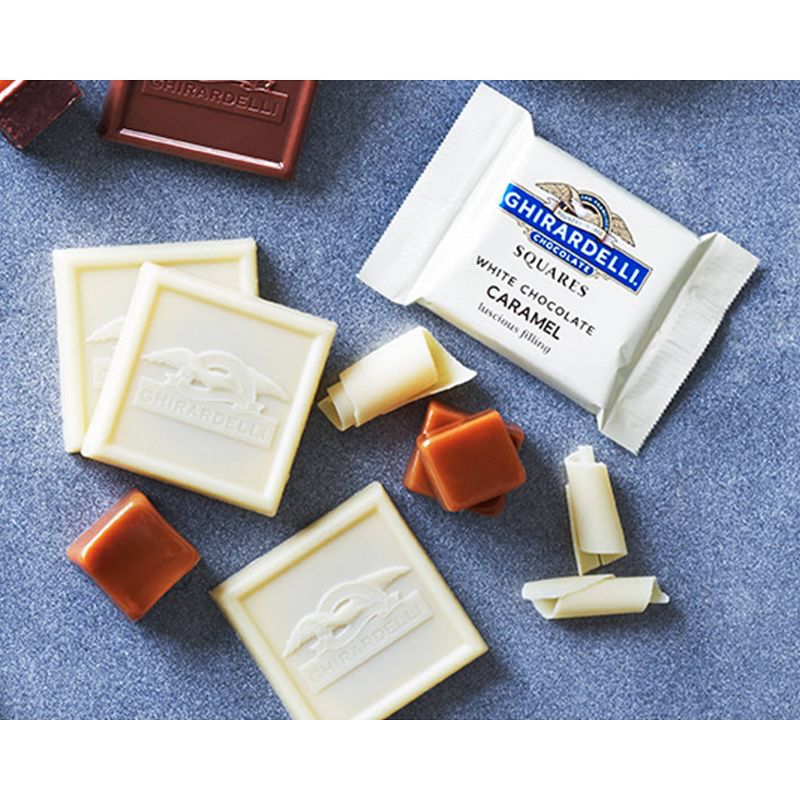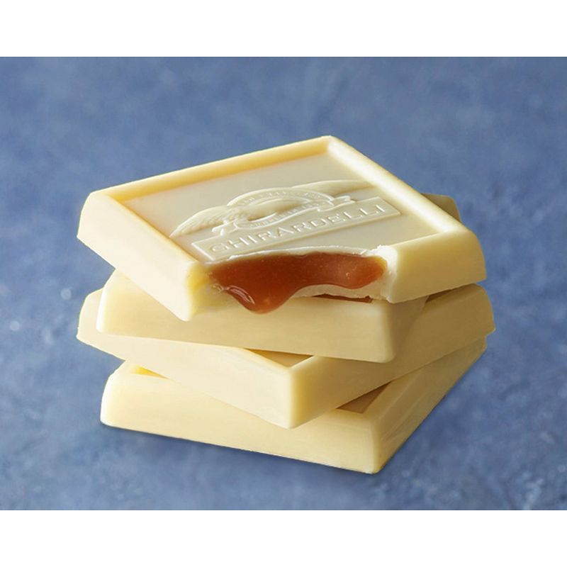 •Luscious caramel filling in Ghirardelli's rich, decadent white chocolate