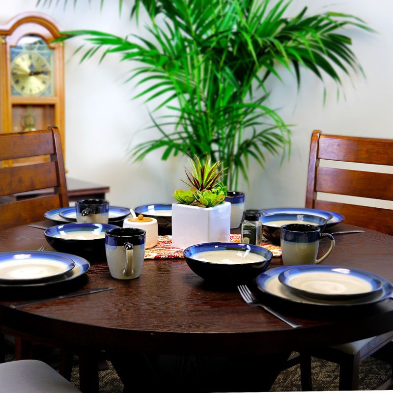 The Gibson Couture Bands 16 Piece Dinnerware Set offers a round shape and a banded rim pattern. The beautiful multi colored plate set will bring fun and excitement to your next meal. Perfect for every day and special occasions, each dish is microwave safe for quick heating and dishwasher safe for easy cleaning.