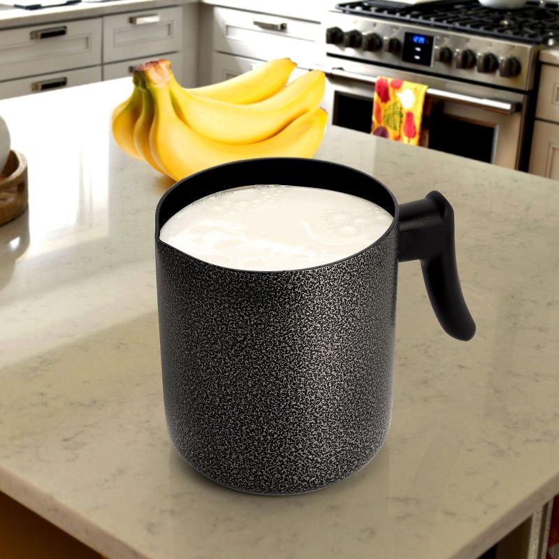 Warming up milk just got easier with this Clairborne 1.7 Quart Milk pot. With a taller body, convenient handle and easy pour spout, this is the perfect kitchen tool for heating up milk. Ergonomic Bakelite handle is heat resistant, making is safe to you. Pour spout is designed to allow for easy pouring, never having to cry over spilled milk. Also offers nonstick interior coating, making is easy to clean and care for.