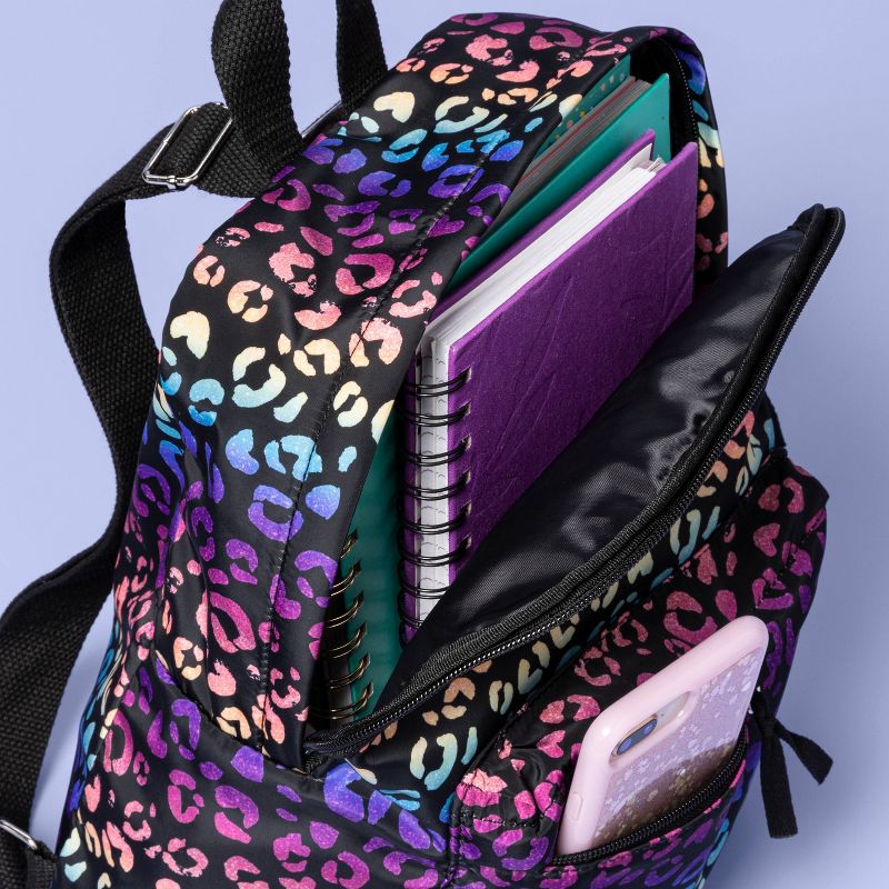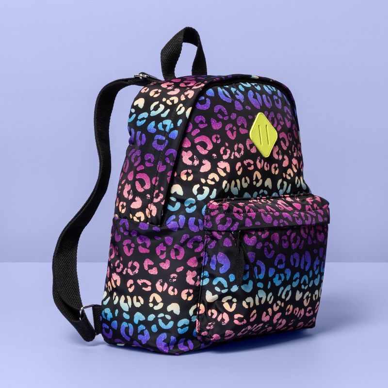 Bring a touch of shine and magic to your gal's day with the Rainbow Leopard-Print Backpack from More Than Magicâ„¢. Designed with a spacious zippered compartment for stashing her books, lunch, craft supplies or stationery, this girls' backpack features an exterior zip pocket to accommodate her wallet, small electronics and other everyday essentials. The adjustable shoulder snaps make carrying easy, and it also features a tote handle at the top that gives her the option of carrying it by hand. Featuring a leopard print in rainbow hues, it brings sweet style to her day.