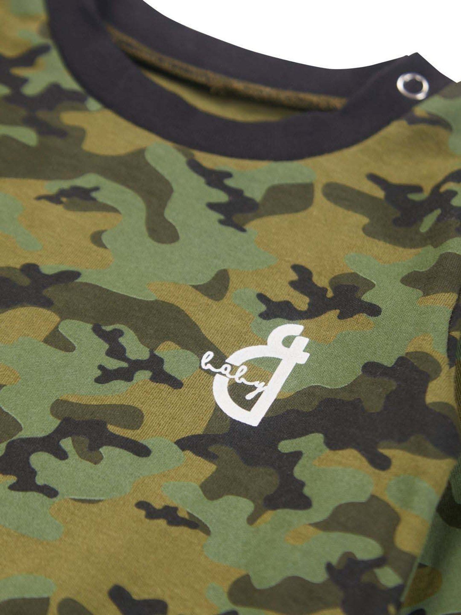 Sprinkle a hint of style to your little kid's look with this green romper from GJ baby. Crafted with care using premium quality cotton fabric, it will be very soft to the skin. The round neck adds to its appeal. Exuding full sleeves, it is sure to fetch your kid compliments from all. It emanates a camouflage pattern which makes it a unique choice.