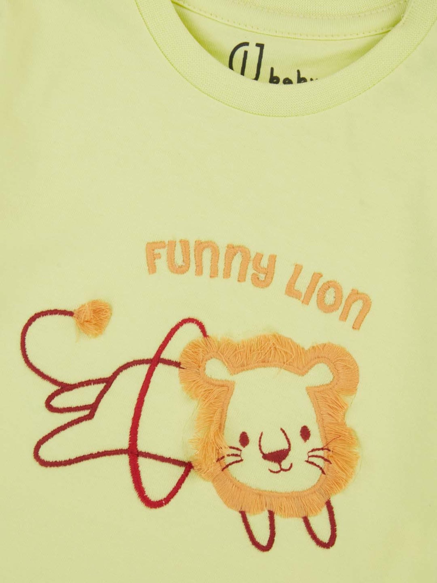 Your little child is sure to grab eyeballs wearing this yellow t-shirt from GJ baby. Crafted with care using premium quality cotton fabric, it will be very soft to the skin. The round neck adds to its appeal. Flaunting half sleeves, it will surely keep your kid updated with the latest trend. Showcasing an applique work, it is a must-have in your wardrobe.