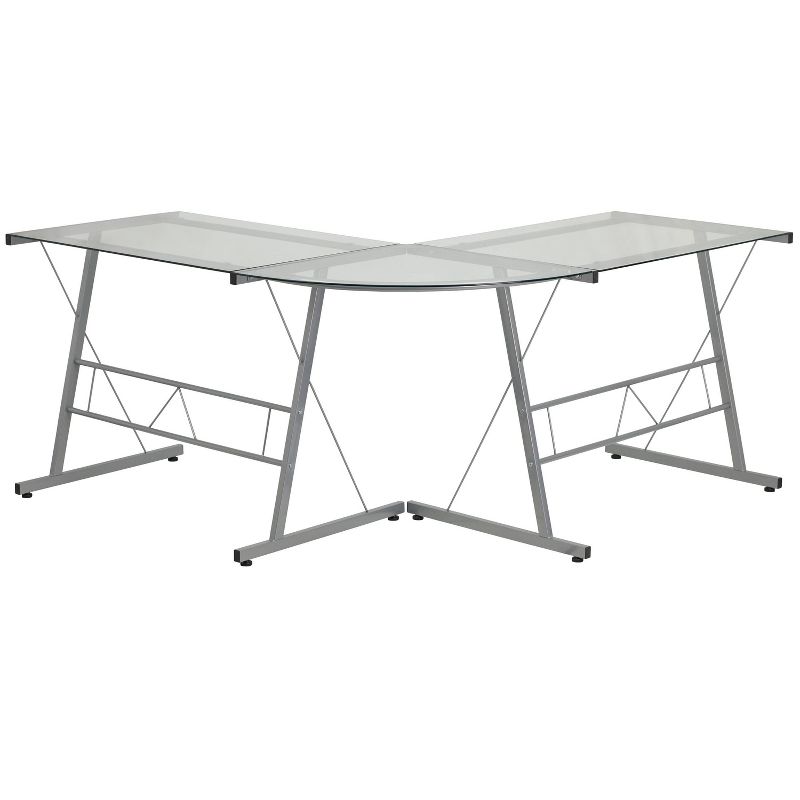 •Stage the perfect setting in your office with this stylish and affordable glass l-shaped desk. Boosting a large work surface to accommodate your laptop or desktop and an open design for a modern setting.