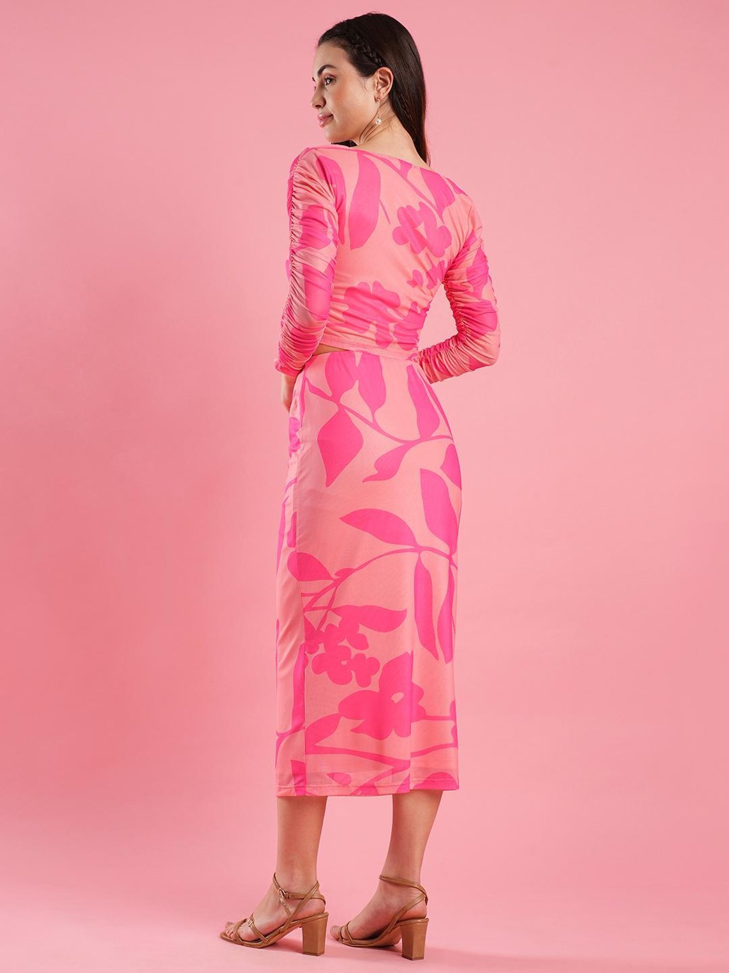 Add quirky styles to your casual repertoire with this pair of pink crop top with skirt from Globus. Crafted from a net fabric they will provide a soft touch against your skin. Besides, they features a square neck, full sleeves and printed pattern that renders it trendy and further gives it some edge. Team it with a pair of wedges to have a trendy look.