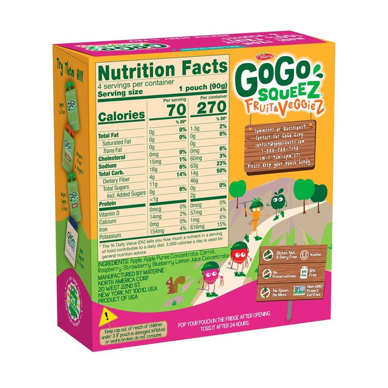 •Unsweetened fruit and veggie pouches made from 100% real fruit, kosher certified, non-GMO, gluten free, nut free, dairy free, no added colors, flavors, or high fructose corn syrup.