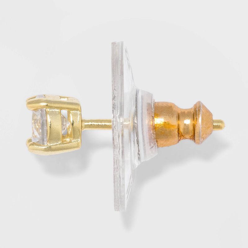 Add a stunning touch of sparkle to your look with these Gold/Clear Gold Over Sterling Silver Round Cubic Zirconia Stud Fine Jewelry Earrings from A New Dayâ„¢. This set of cubic zirconia studs in two different sizes gives you options to choose from. Showcasing round-cut clear cubic zirconia stones held in a secure four-prong setting, these brilliant earrings are both simple and elegant. Enhanced with a highly polished finish and a touch of gold, these beautiful sterling silver earrings add shine to your everyday looks, and make for a sparkling accessory you're sure to love. Effortlessly complement any of your casual or formal outfits with their dazzling classic look.