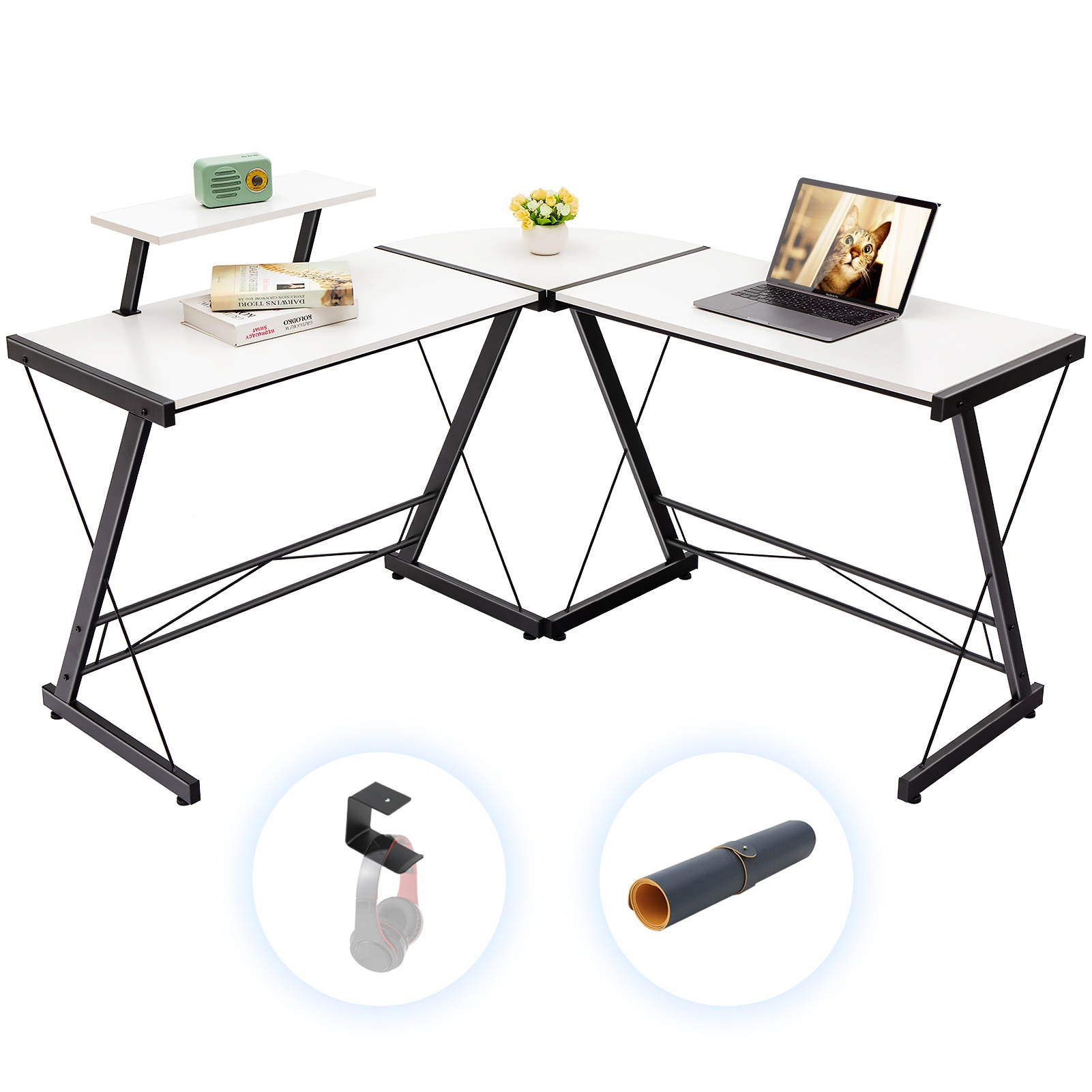 Buy Gome L-Shaped Computer Desk - 51" Corner Desk with Monitor Stand for Home Office, Modern Writing Desk for Work, Study and Gaming for saving space, Ergonomic Wood Desk (Black) in United States - Cartnear.com