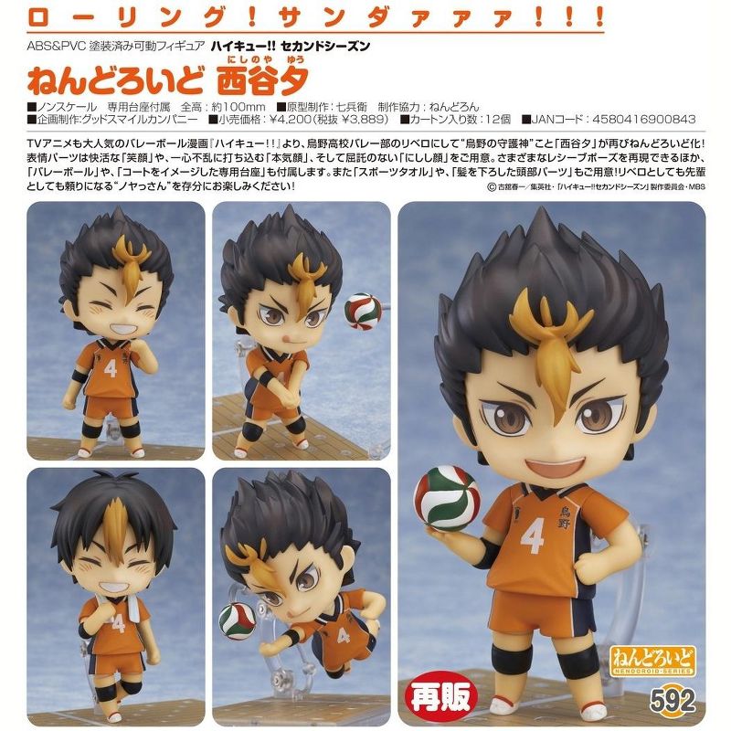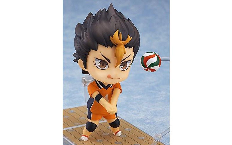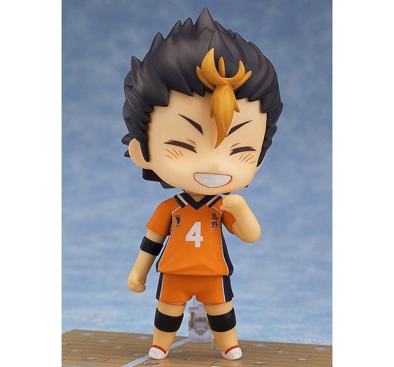 rom Good Smile Company. From the volleyball manga series with two anime seasons, Haikyuu!! comes a Nendoroid of the Karasuno High School volleyball clubs' libero known as "Karasuno's Guardian Deity" - Yu Nishinoya! He comes with three different expressions including a cheerful smile, a serious expression to display him concentrating on the match and a carefree grinning expression. The Nendoroid is able to take various receiving poses and also comes with a volleyball and special base made in the image of a volleyball court. A sports towel and as well as alternate hair parts with his hair down are also included! Enjoy the reliable "Noya-san" in your collection.