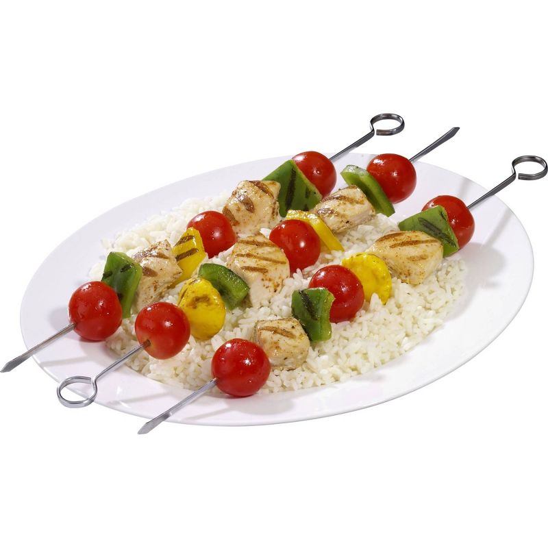 •Set of four sturdy and reusable 12 inch metal skewers.
