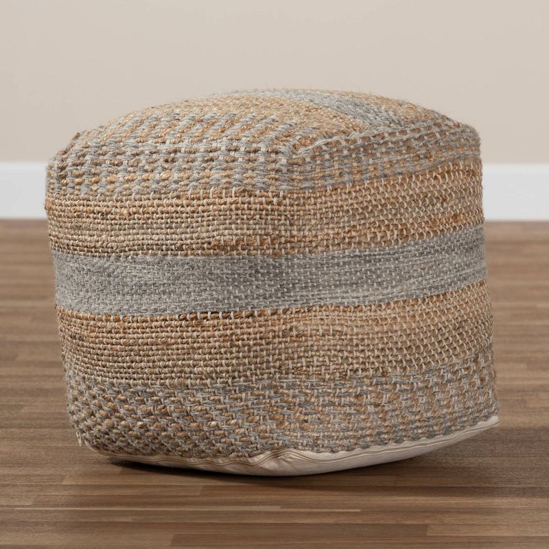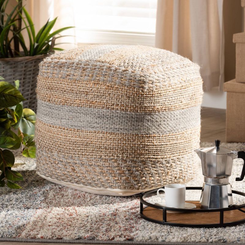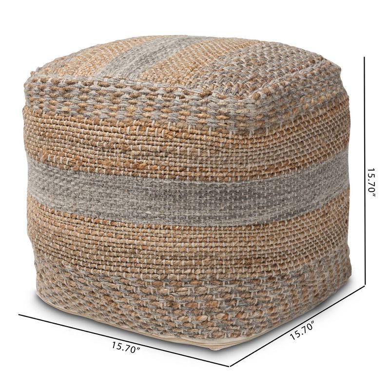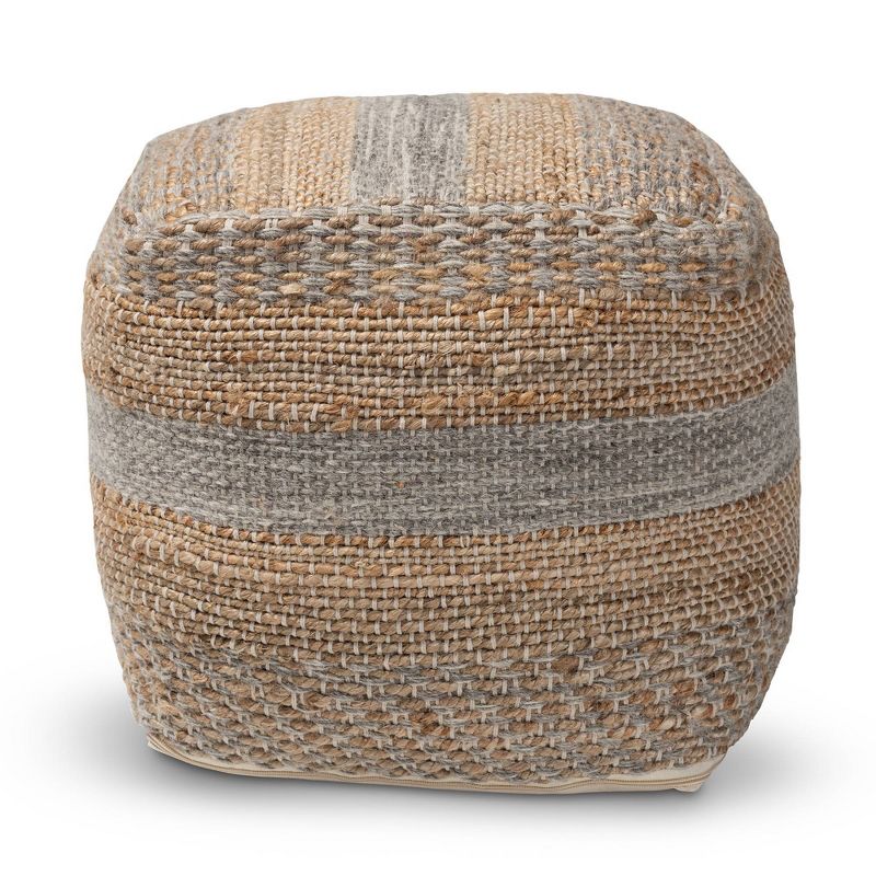 Add a cozy, bohemian touch to any space with the Grange pouf. Handwoven from wool fabric and hemp, the Grange features an understated blend of natural and gray tones. These distinctive colors highlight the various patterns woven into the pouf. The Grange can be used as a seat, footstool, or casual coffee table. Made in India.